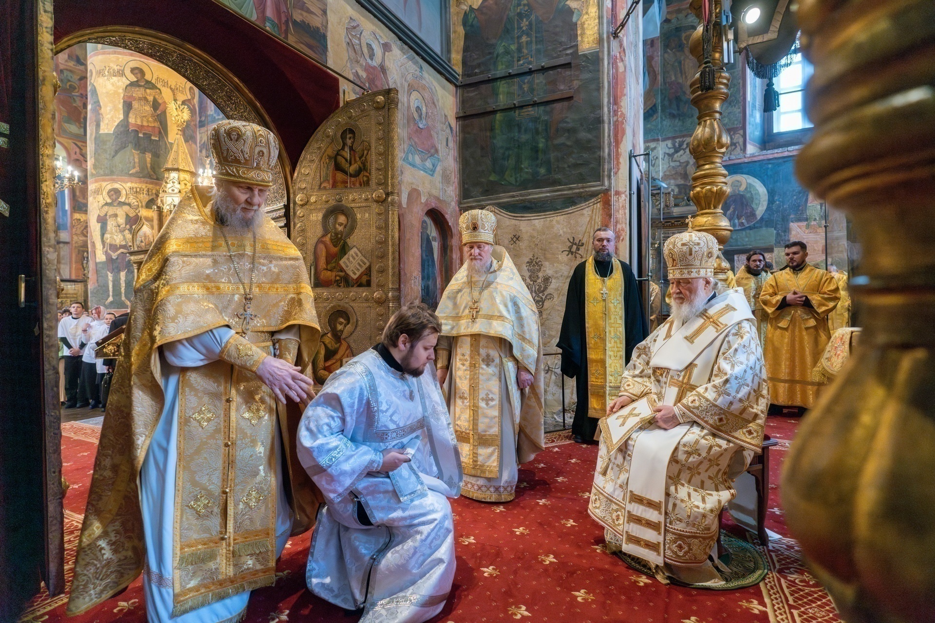 За Литургией Святейший Владыка рукоположил диакона Илию Кашицынa, секретаря Отдела внешних церковных связей Московского Патриархата по межрелигиозным отношениям, клирика храма Покрова Пресвятой Богородицы на Люберецких полях г. Москвы, в сан пресвитера.