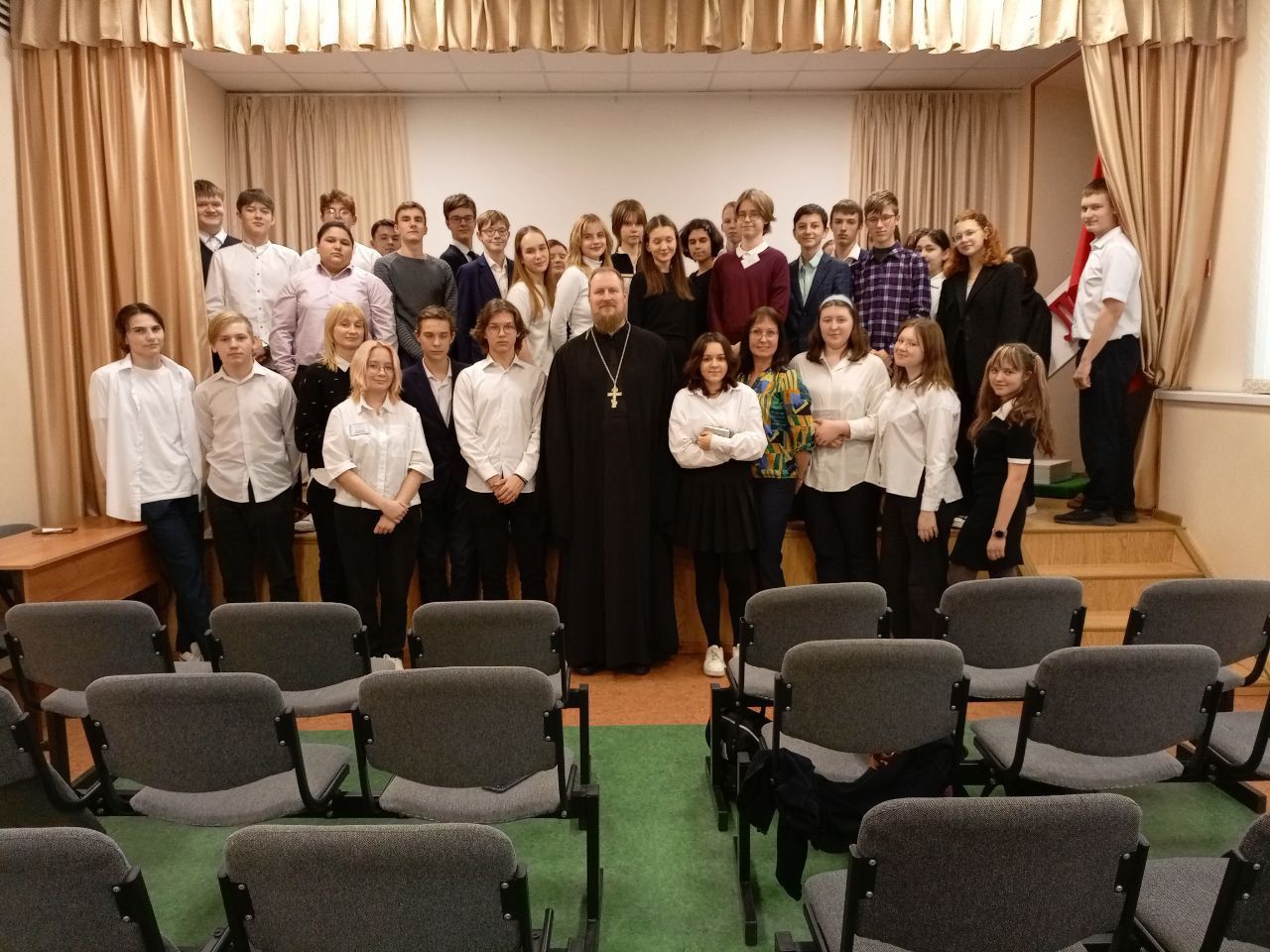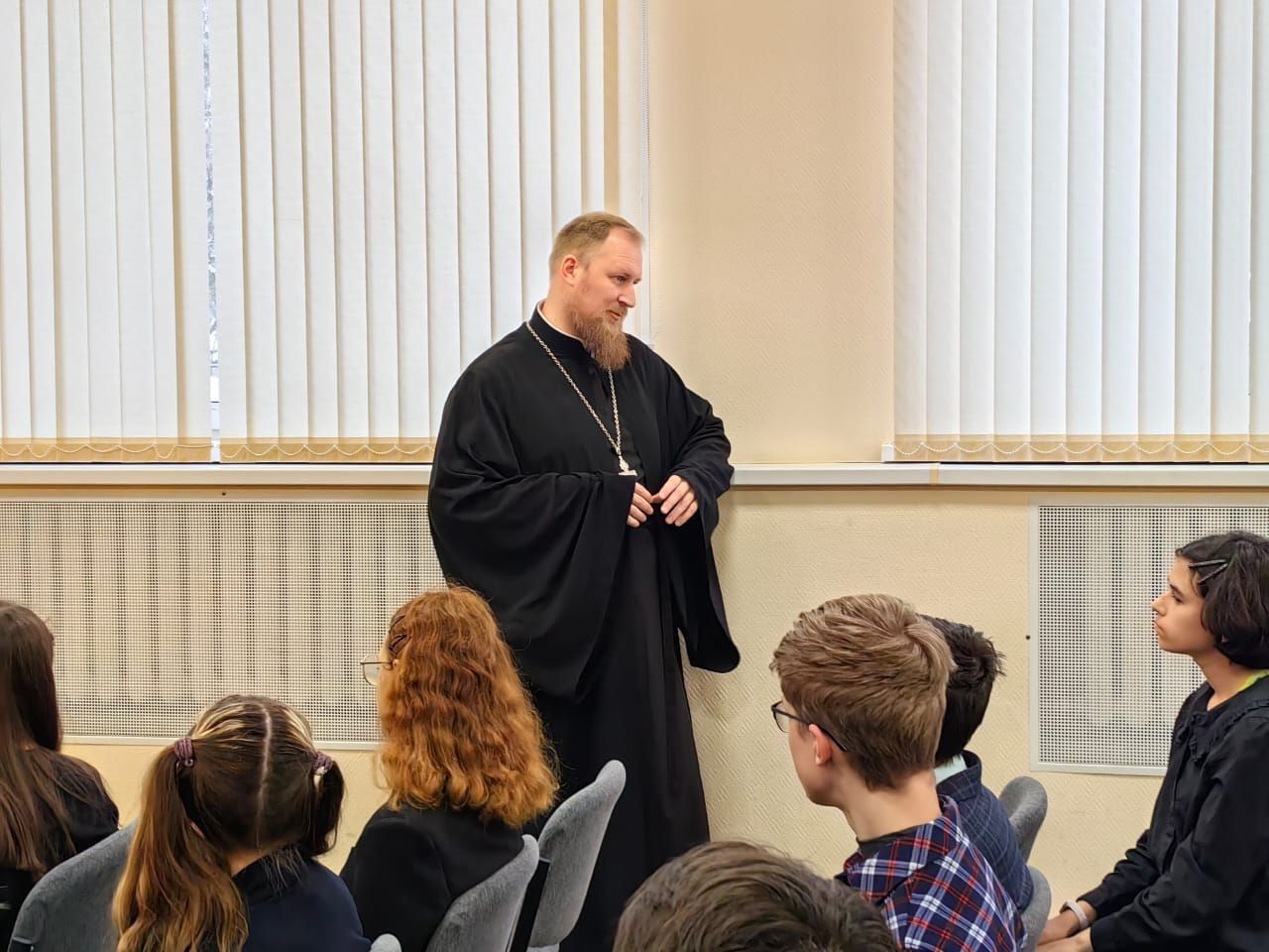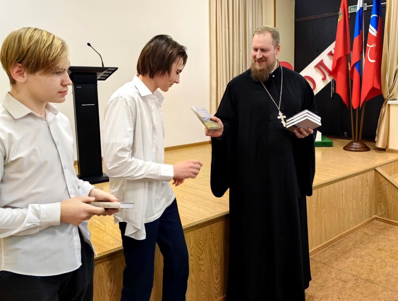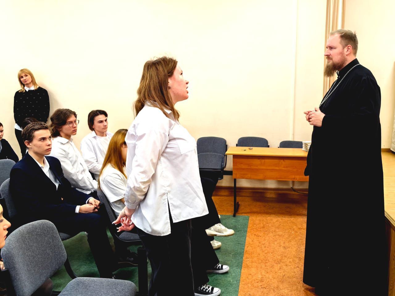 Формат встречи был определен как «Вопрос-Ответ». Батюшка подарил школьникам книгу-сборник святоотеческих поучений «Путь к Богу».