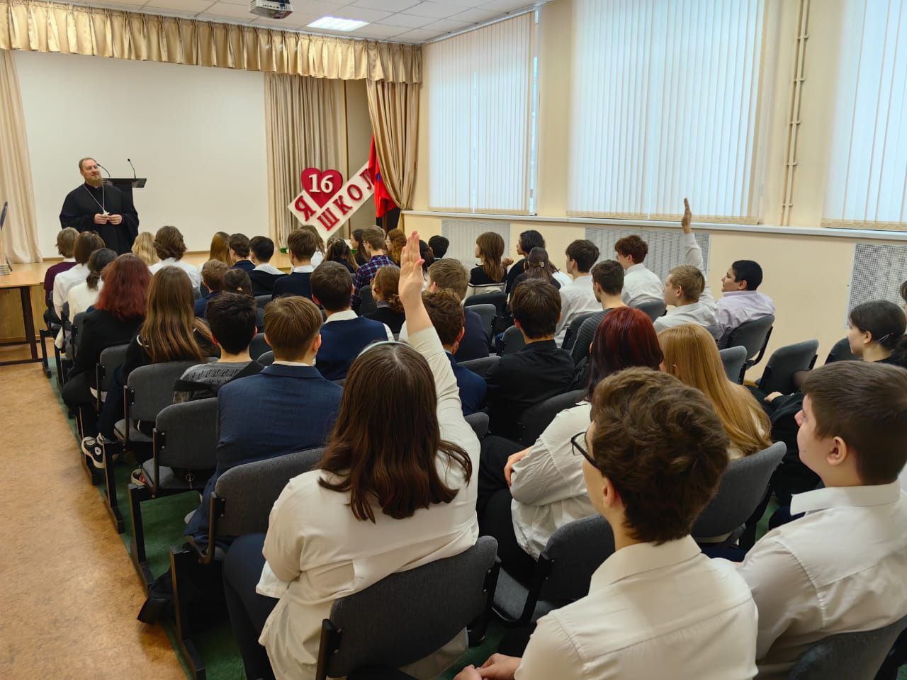 23 января в школе № 16 г. Щёлково состоялась встреча учащихся 8-9 классов с клириком Троицкого собора г. Щёлково священником Павлом Чекалиным.