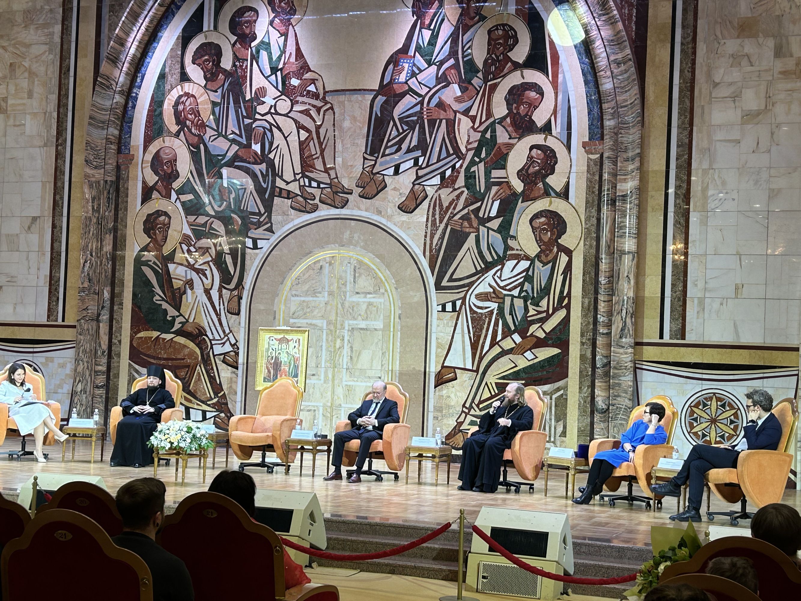 Затем состоялась панельная дискуссия под председательством руководителя Синодального Отдела по делам молодёжи Русский Православной Церкви епископа Истринского Серафима с участием председателя Отдела по делам молодёжи г. Москвы протоиерея Кирилла Сладкова, председателя Патриаршей комиссии по вопросам семьи, защиты материнства и детства иерея Феодора Лукьянова, руководителя проекта Федеральных подростковых центров Валерия Майорова и телеведущей, журналистки Тутты Ларсен.