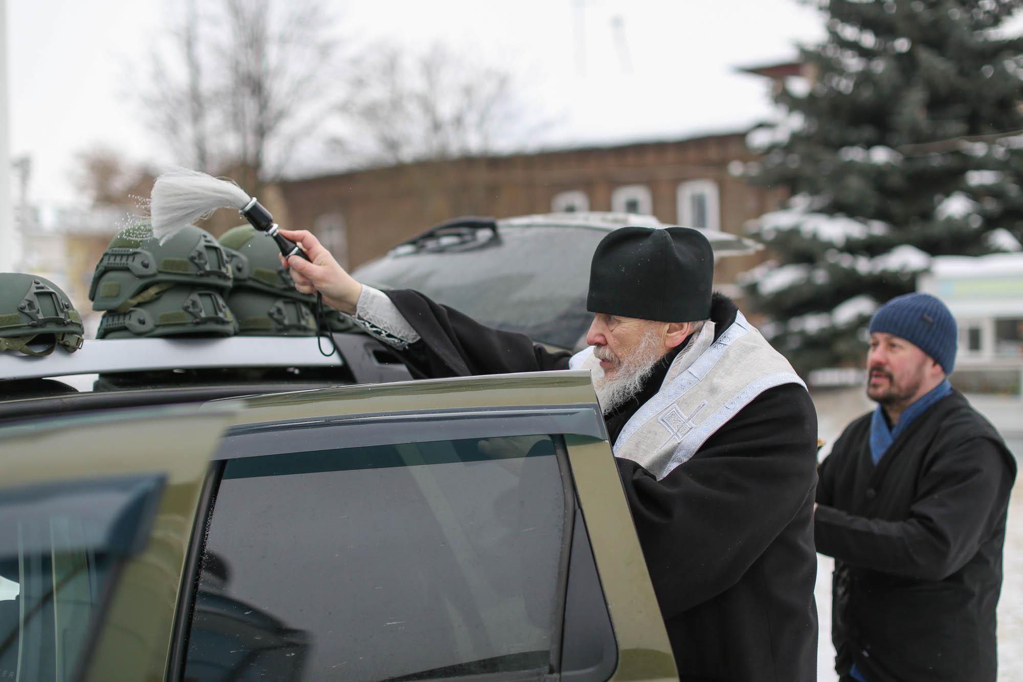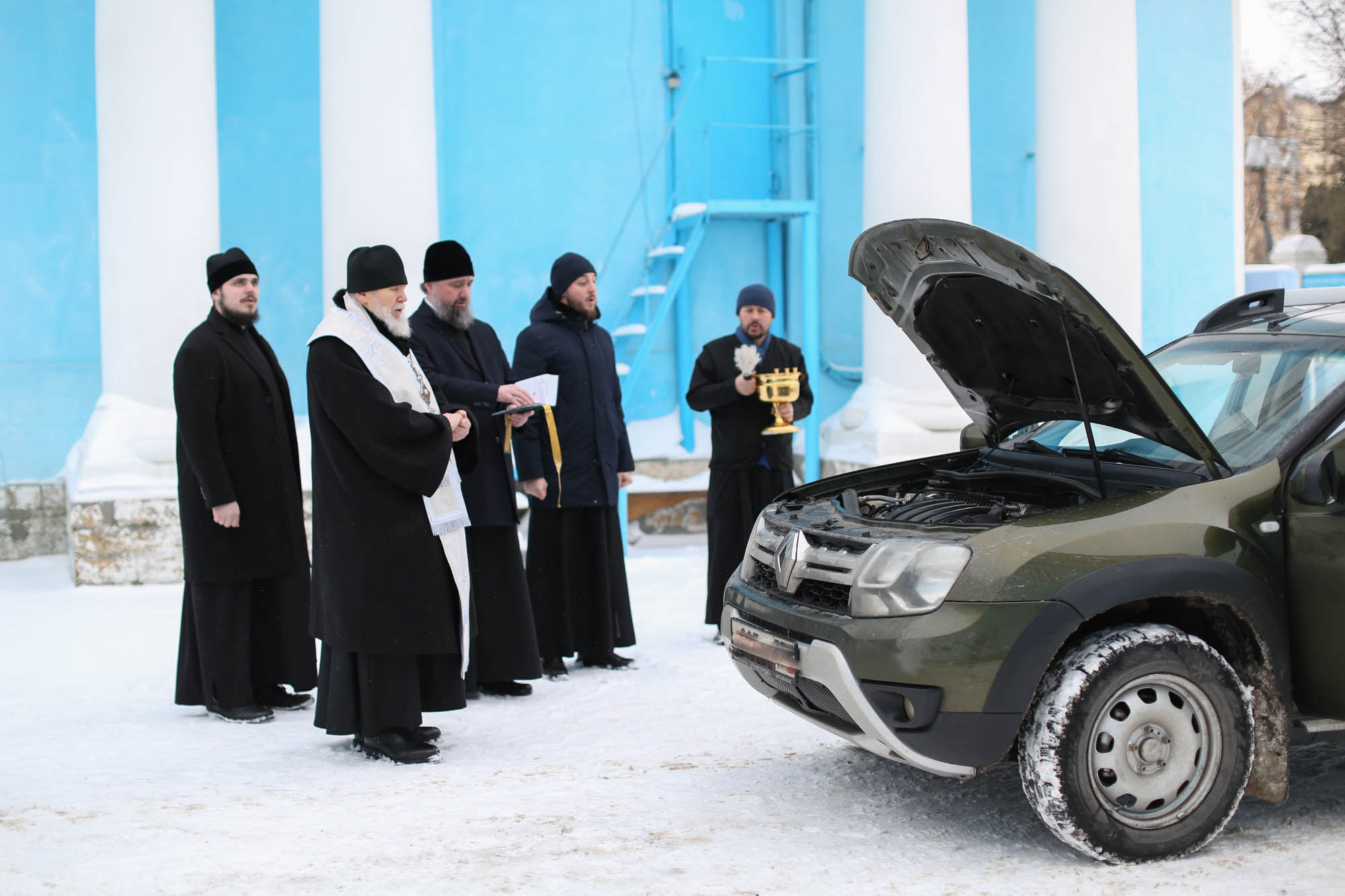 22 февраля у стен Богоявленского собора г. Ногинска епископ Балашихинский и Орехово-Зуевский Николай совершил освящение отправляющегося в зону проведения Специальной военной операции автомобиля повышенной проходимости и гуманитарного груза.
