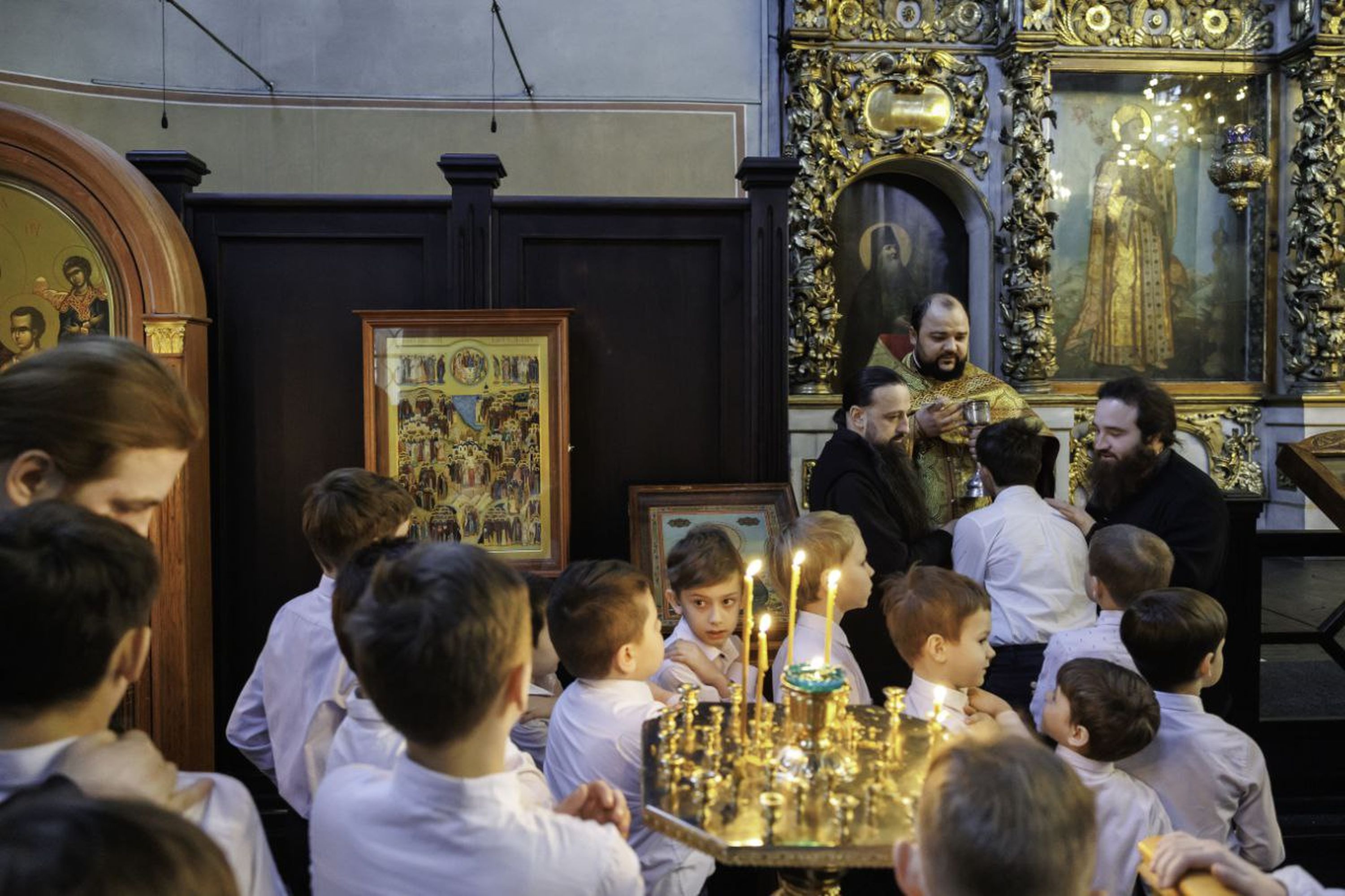 Дети пели вторым хором за ранней Божественной литургией в Донском соборе и причастились Святых Христовых Таин.