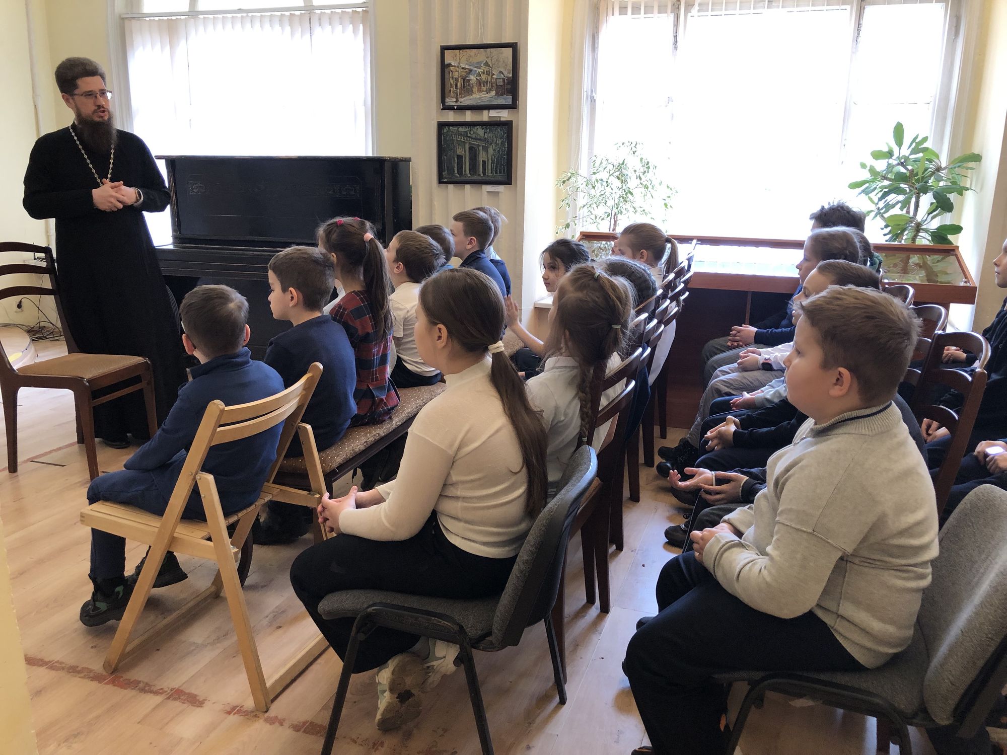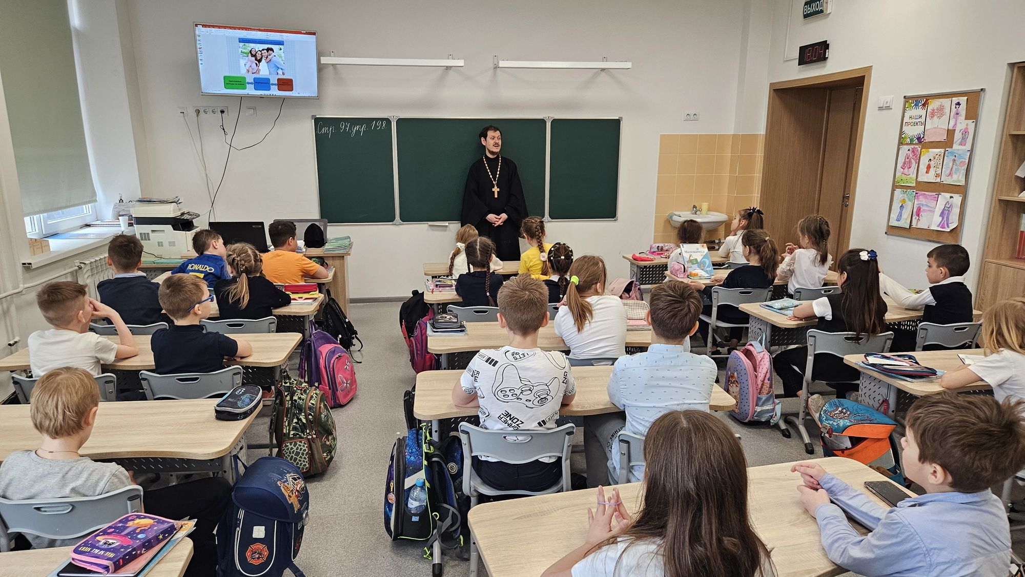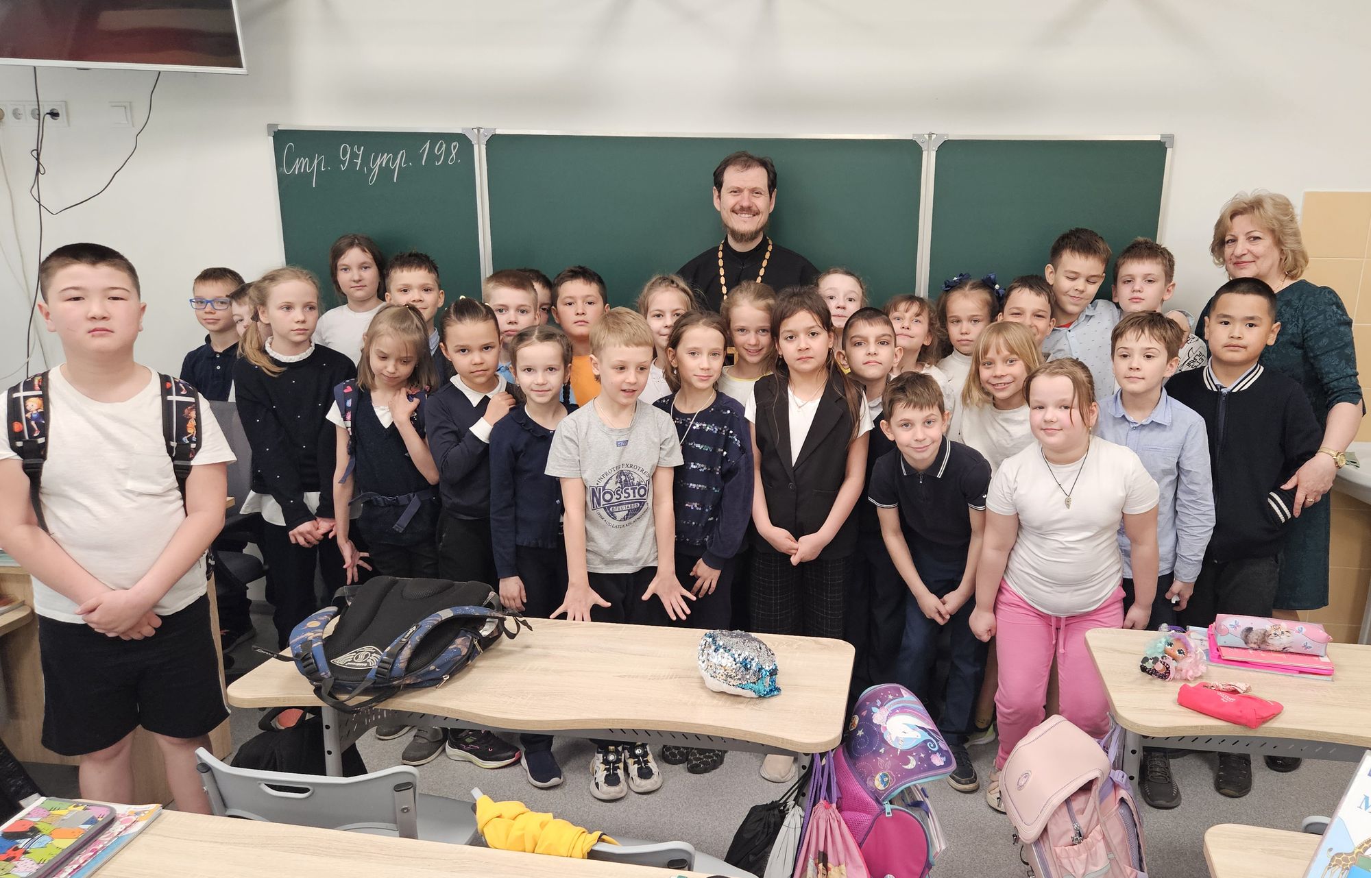 18 апреля в школе №20 посёлка Краснознаменский прошли встречи священника с учащимися. Настоятель Богородицерождественского храма посёлка Образцово священник Димитрий Выдумкин провёл уроки с учениками 9-го и 2-го классов на тему «Семья – основа государства».