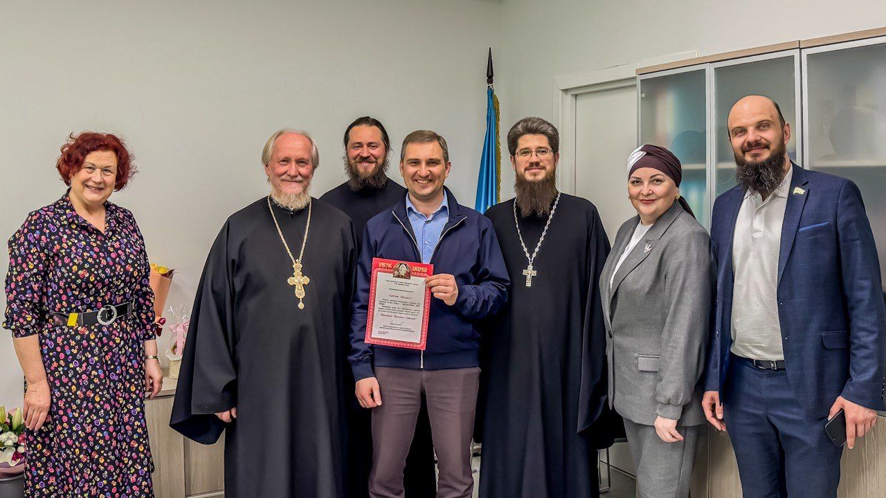 В завершение встречи отец благочинный вручил поздравительный адрес епископа Балашихинского и Орехово-Зуевского Николая с наступающим праздником Пасхи главе городского округа Звёздный городок Евгению Васильевичу Баришевскому и председателю совета депутатов Оксане Павловне Попович.
