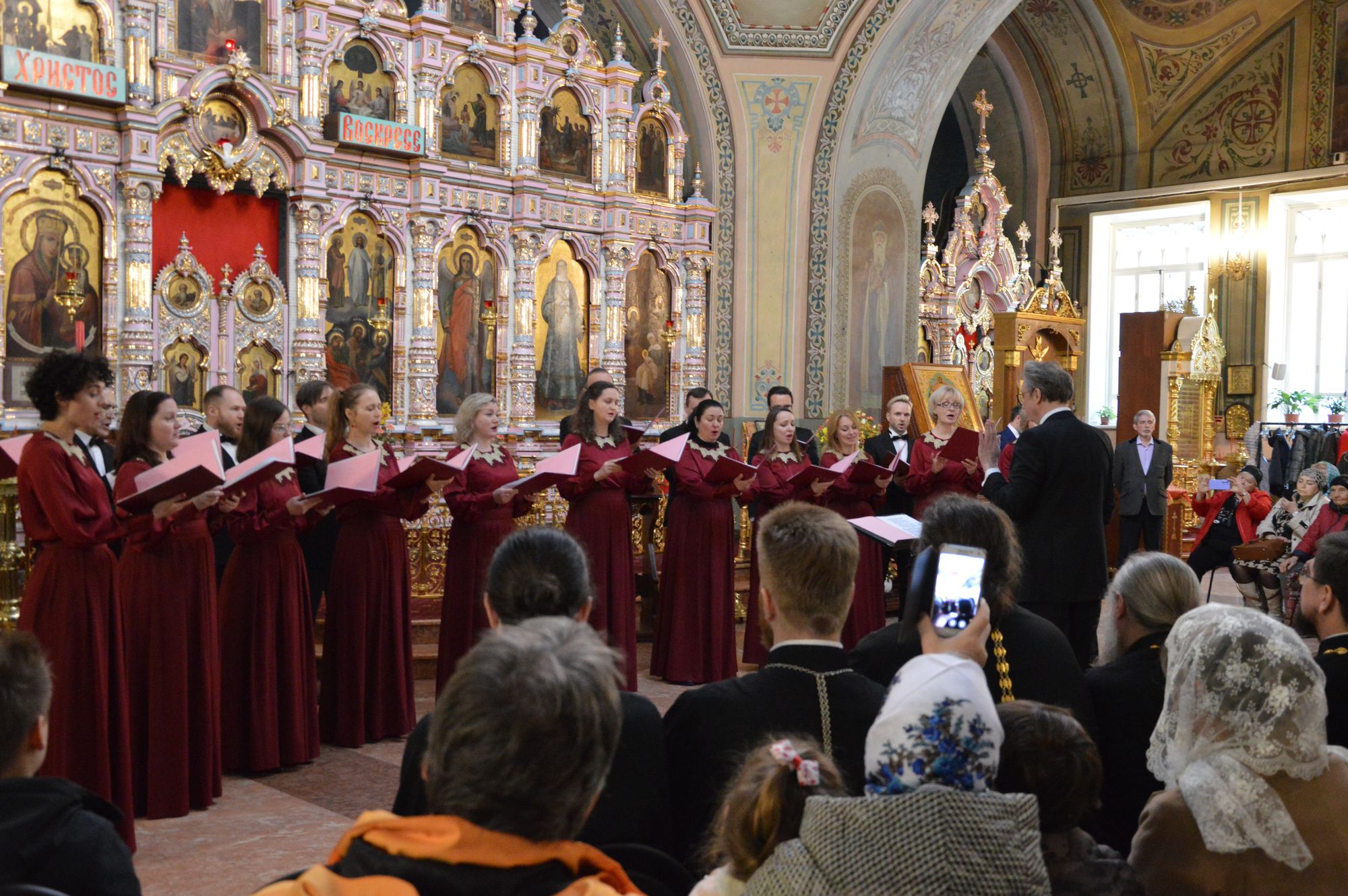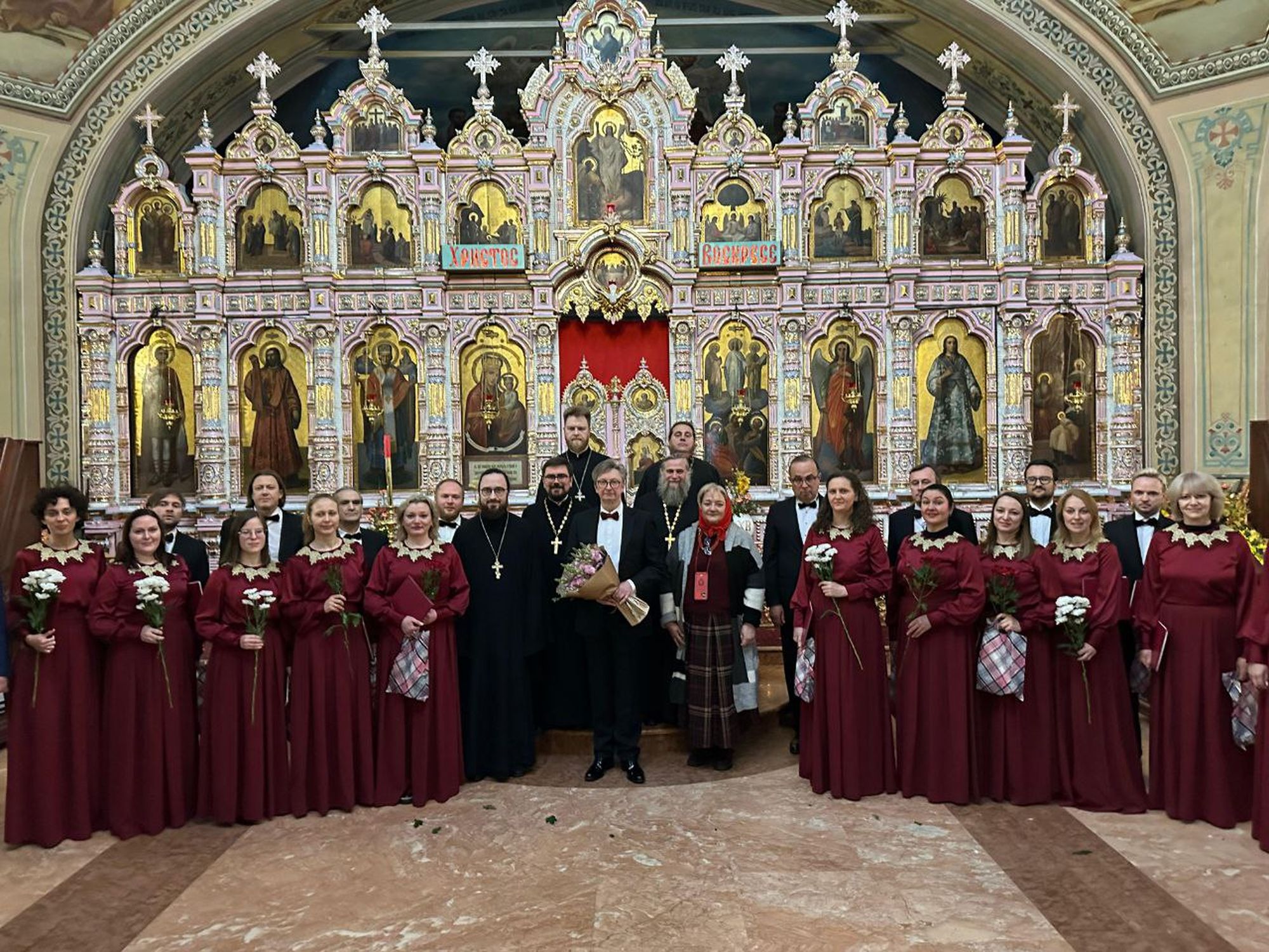 Патриарший хор Храма Христа Спасителя исполнил церковные песнопения: тропарь Пасхи в обработке композитора Алексея Астафьева, ирмосы Пасхального канона Артемия Веделя, «Воскресение Христово видевше» Николая Толстякова, «Отче наш», «Тебе поем», «Ангел вопияше» и «Блажен муж» Петра Ильича Чайковского, «Хвалите Господа с небес» Александра Никольского, «Богородице Дево, радуйся» и «Тебе поем» Сергея Васильевича Рахманинова, «Хвалите имя Господне» Алексея Ивановича Красностовского, «Хвалите имя Господне» Александра Александрова и «Христос воскресе» Александра Кастальского.