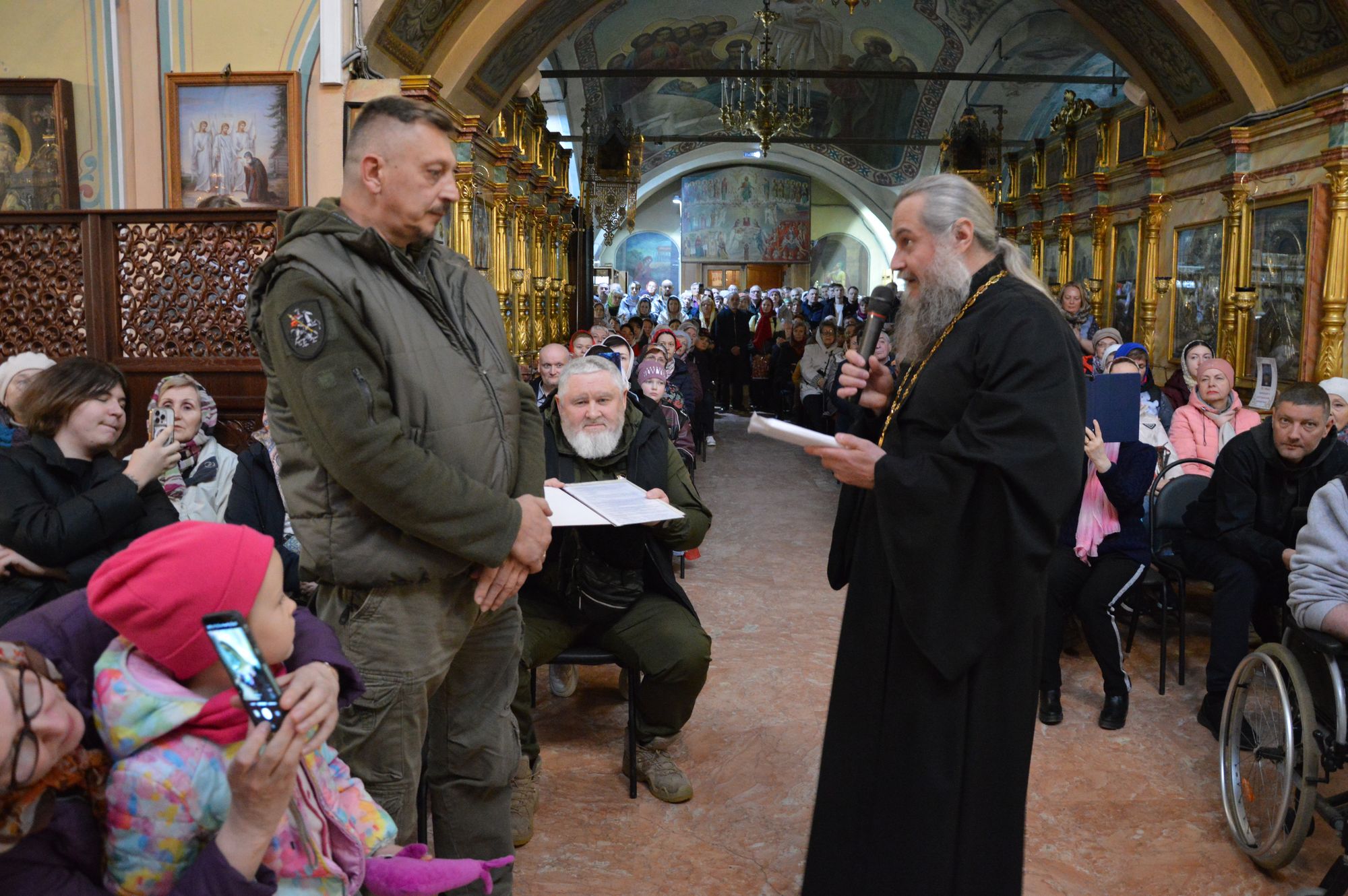 В начале мероприятия настоятель прихода протоиерей Виталий Кулешов обратился с приветственным словом к гостям и прихожанам, передал администратору боевого братства «Георгий Победоносец» Е.В. Сорокину собранные приходом средства для приобретения медицинских препаратов, средств личной гигиены, тактических аптечек и шансовых инструментов для дальнейшей их отправки в гуманитарном конвое на линию боевого соприкосновения в зону Специальной военной операции.
