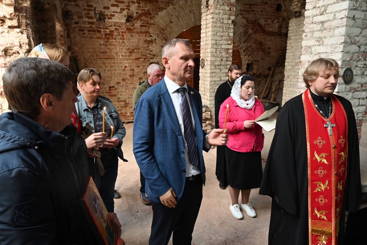 На молебном пении присутствовал депутат Государственной Думы В.В. Фомичёв, который активно занимается восстановлением храма.