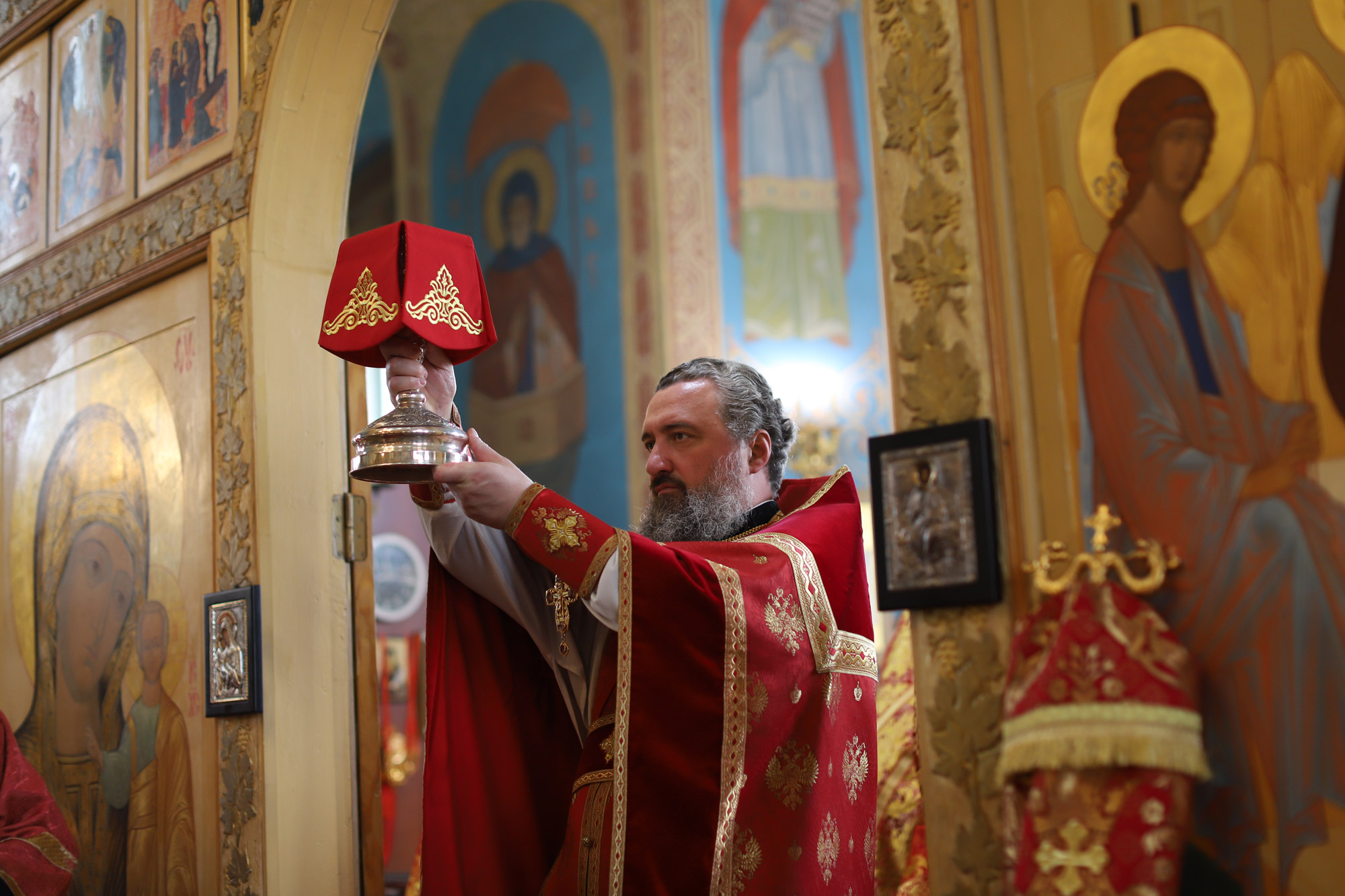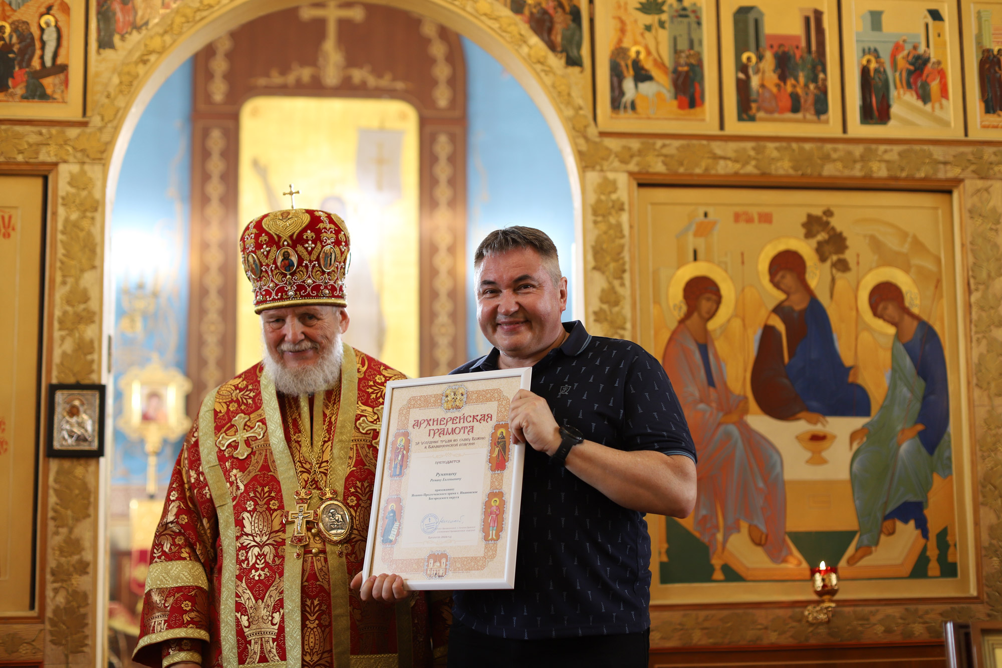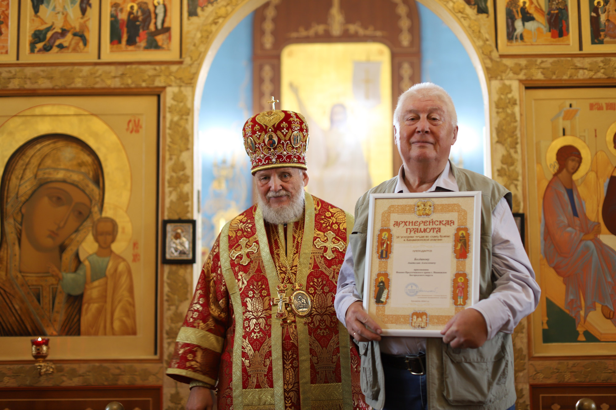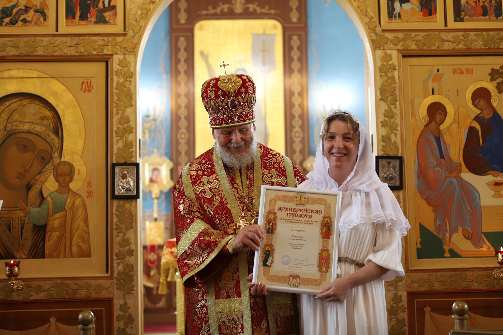 По окончании Литургии перед иконой праздника было совершено славление, после чего отец настоятель поблагодарил Его Преосвященство за совершённое богослужение и преподнёс ему альбом о Забайкальском крае.