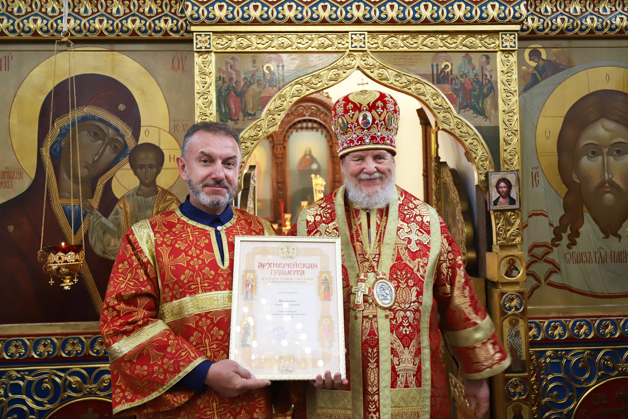 Затем Владыка Николай обратился к сослужившему духовенству и молящимся с архипастырским словом и преподал Архиерейские грамоты Балашихинской епархии благотворителям и труженикам храма.