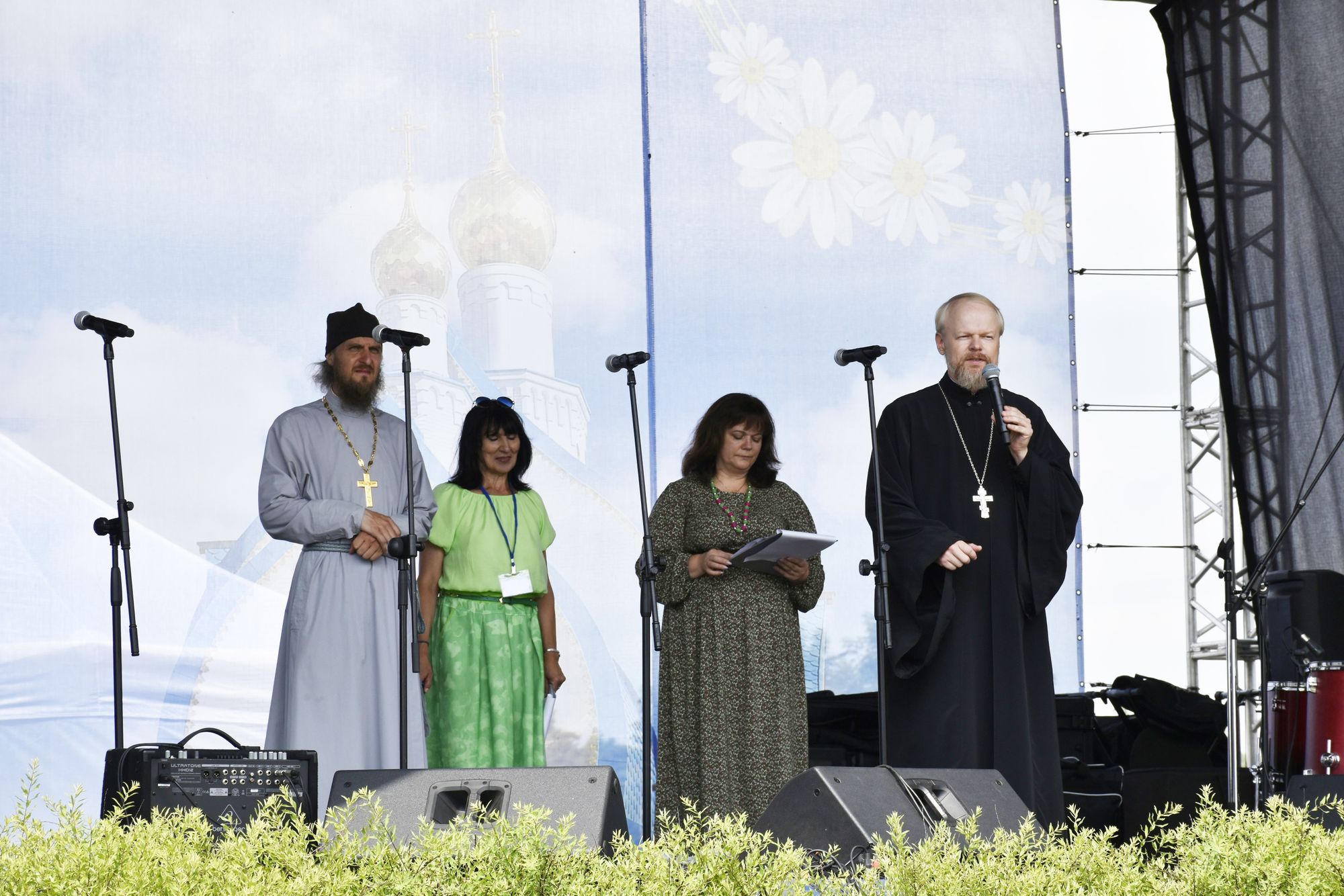 С приветственным словом к участникам и гостям фестиваля обратились ответственный по вопросам семьи, защиты материнства и детства в Щёлковском благочинии священник Димитрий Медведев и настоятель Покровского храма священник Георгий Дорофеев.