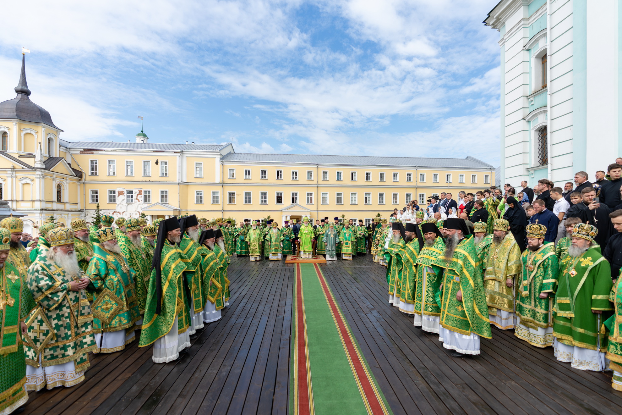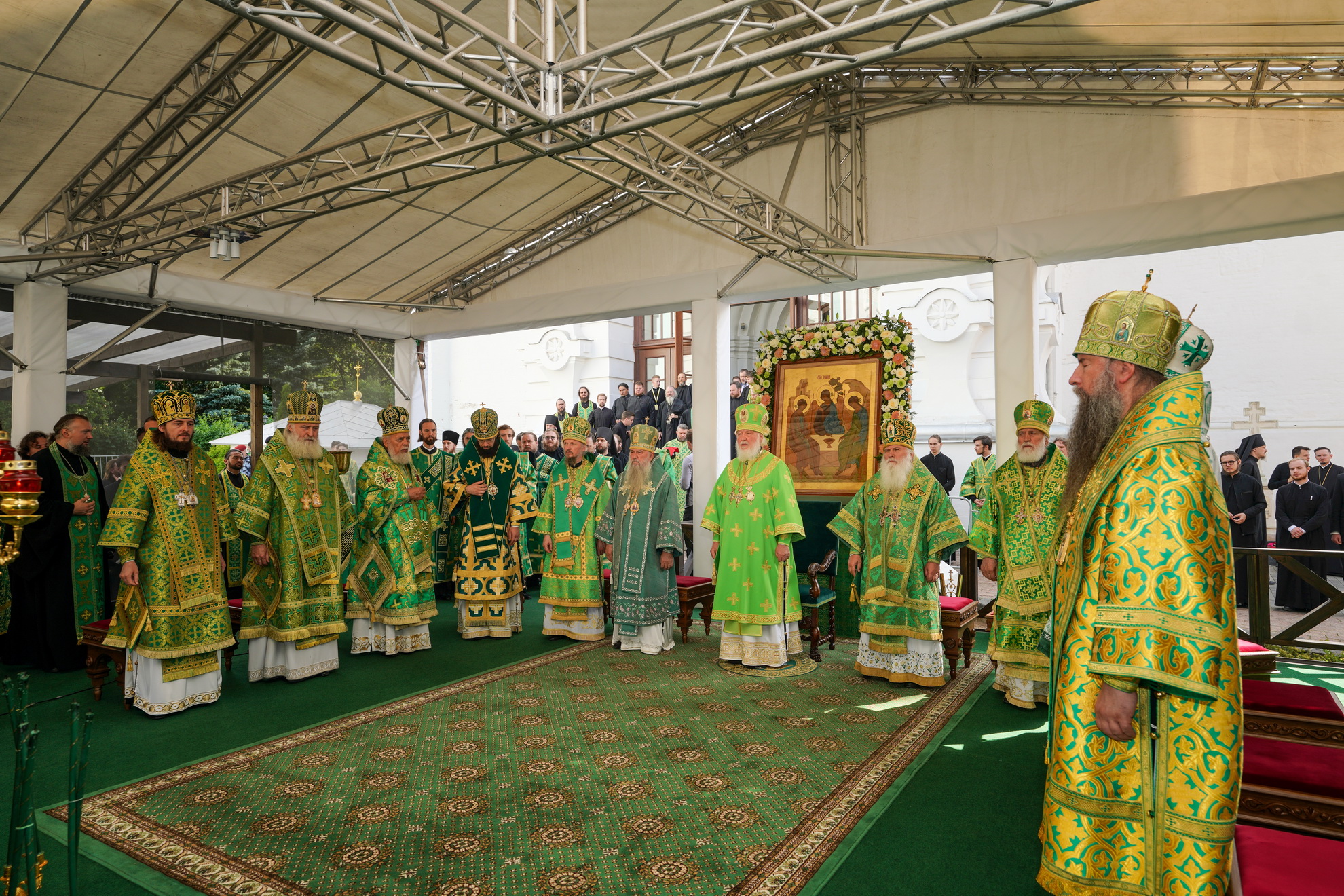 Торжественное богослужение совершалось перед чтимой иконой преподобного Сергия Радонежского. Для совершения праздничных всенощного бдения и Божественной литургии на Соборной площади был устроен помост, а перед Успенским собором лавры — престол под сенью.