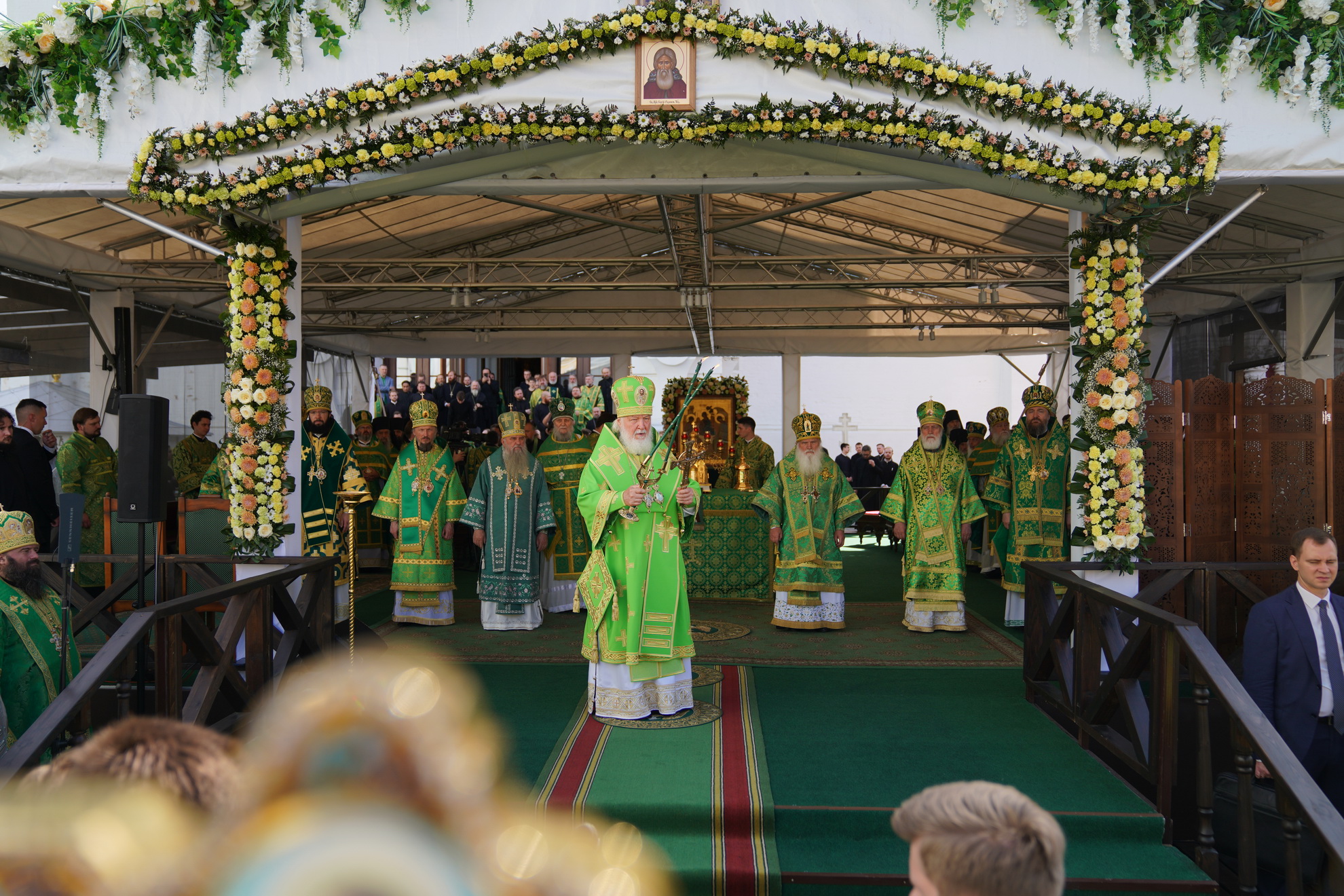 18 июля 2024 года, в день праздника обретения честных мощей преподобного Сергия, игумена Радонежского (1422), Святейший Патриарх Московский и всея Руси Кирилл совершил Божественную литургию на Соборной площади Свято-Троицкой Сергиевой лавры.