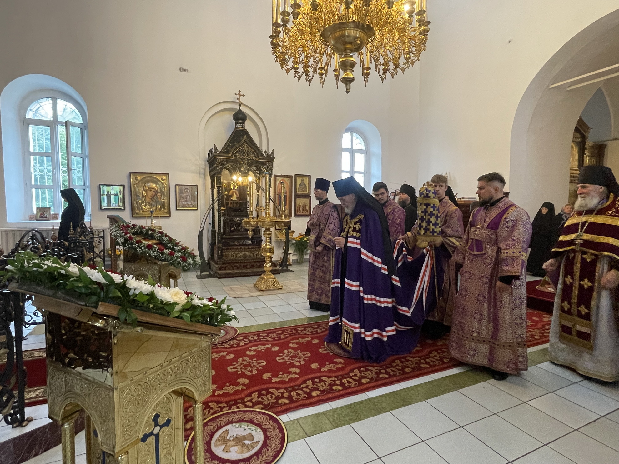Его Преосвященству сослужили благочинный монастырей Балашихинской епархии игумен Евмений (Лагутин), настоятель Покровско-Васильевского монастыря игумен Андрей (Тонков), настоятель Гуслицкого Спасо-Преображенского монастыря игумен Серафим (Голованов), старший священник обители иерей Андрей Филиппенко и духовенство Балашихинской епархии.