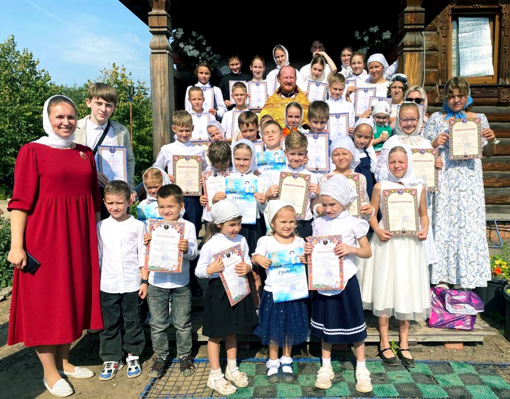 В храме блаженной Ксении Петербургской деревни Медвежьи Озёра после Божественной литургии клирик прихода священник Сергий Ковальчук совершил молебен, по окончании которого состоялось вручение свидетельств и грамот ученикам приходской воскресной школы «Лествица».