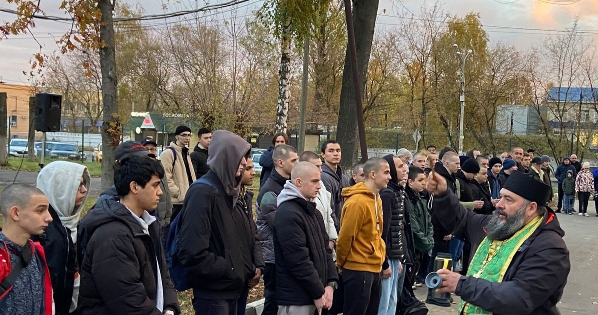После слов напутствия отец Александр благословил новобранцев и окропил всех святой водой.