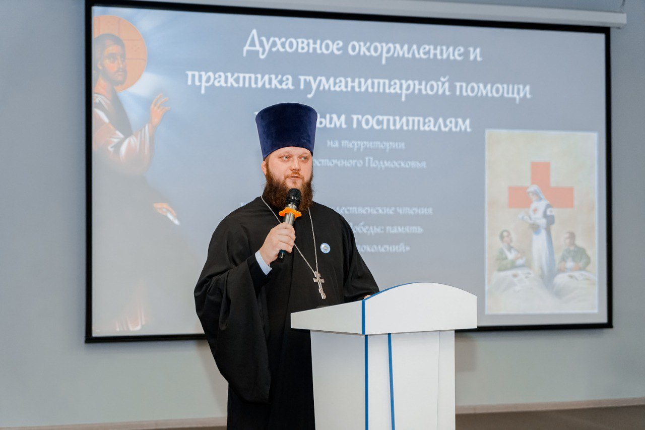 · председатель Епархиального отдела по взаимодействию с медицинскими учреждениями священник Павел Скрипник на тему: «Духовное окормление и практика гуманитарной помощи военным госпиталям на территории Восточного Подмосковья».