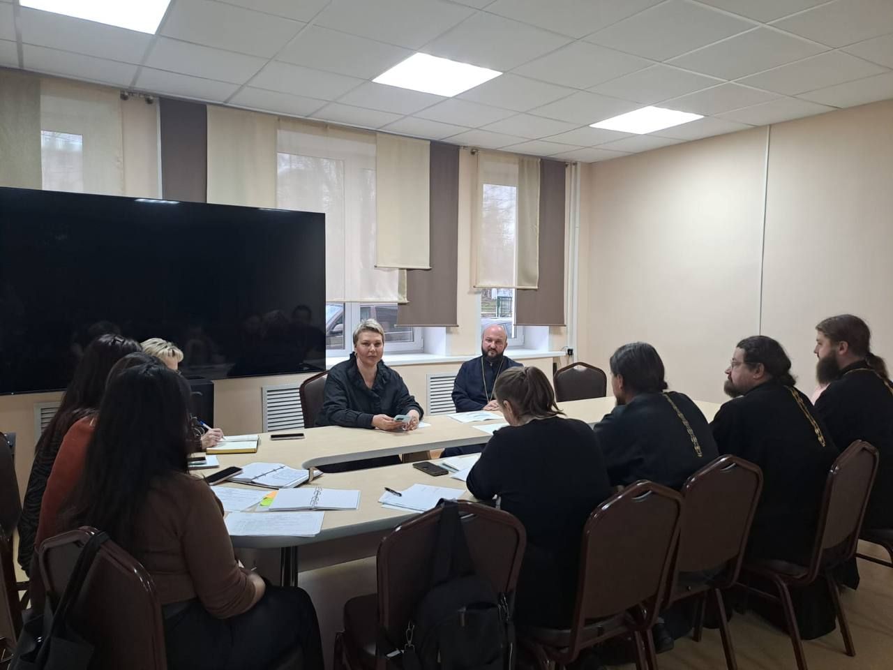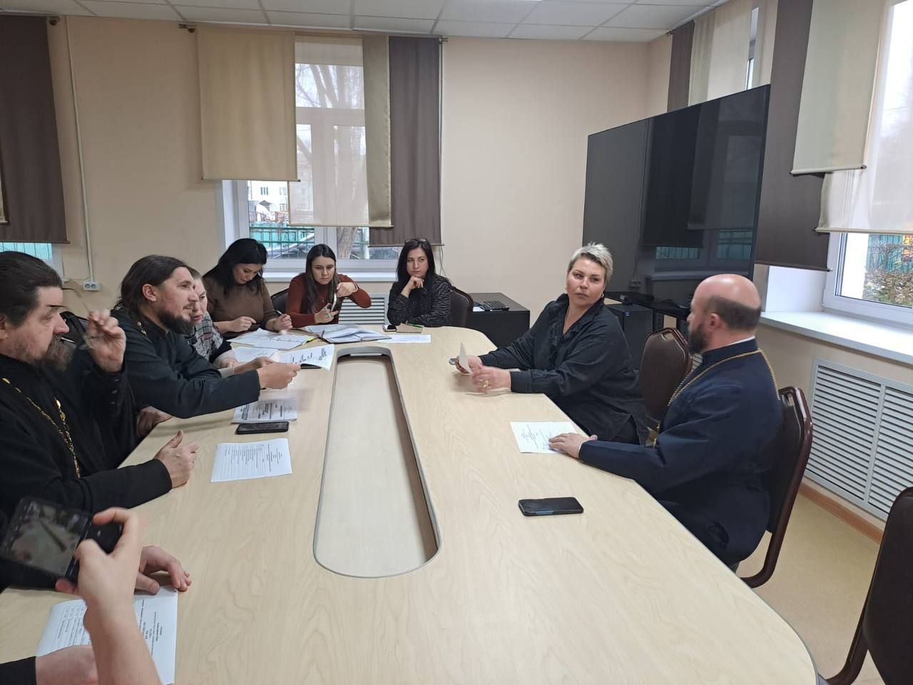 В работе совещания приняли участие начальник О. М. Чиханова и сотрудники управления, благочинный Орехово-Зуевского церковного округа протоиерей Андрей Коробков и представители благочиния.