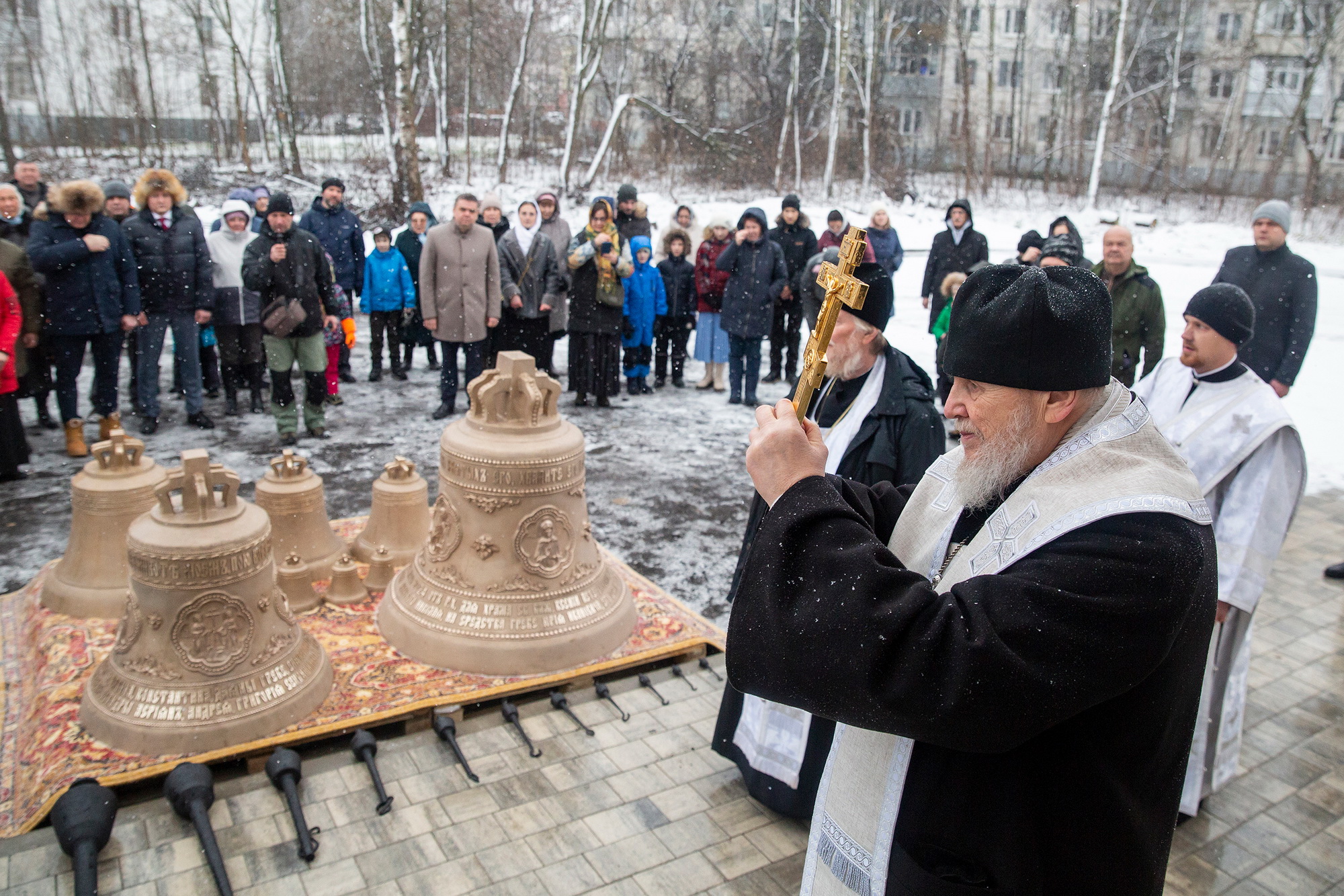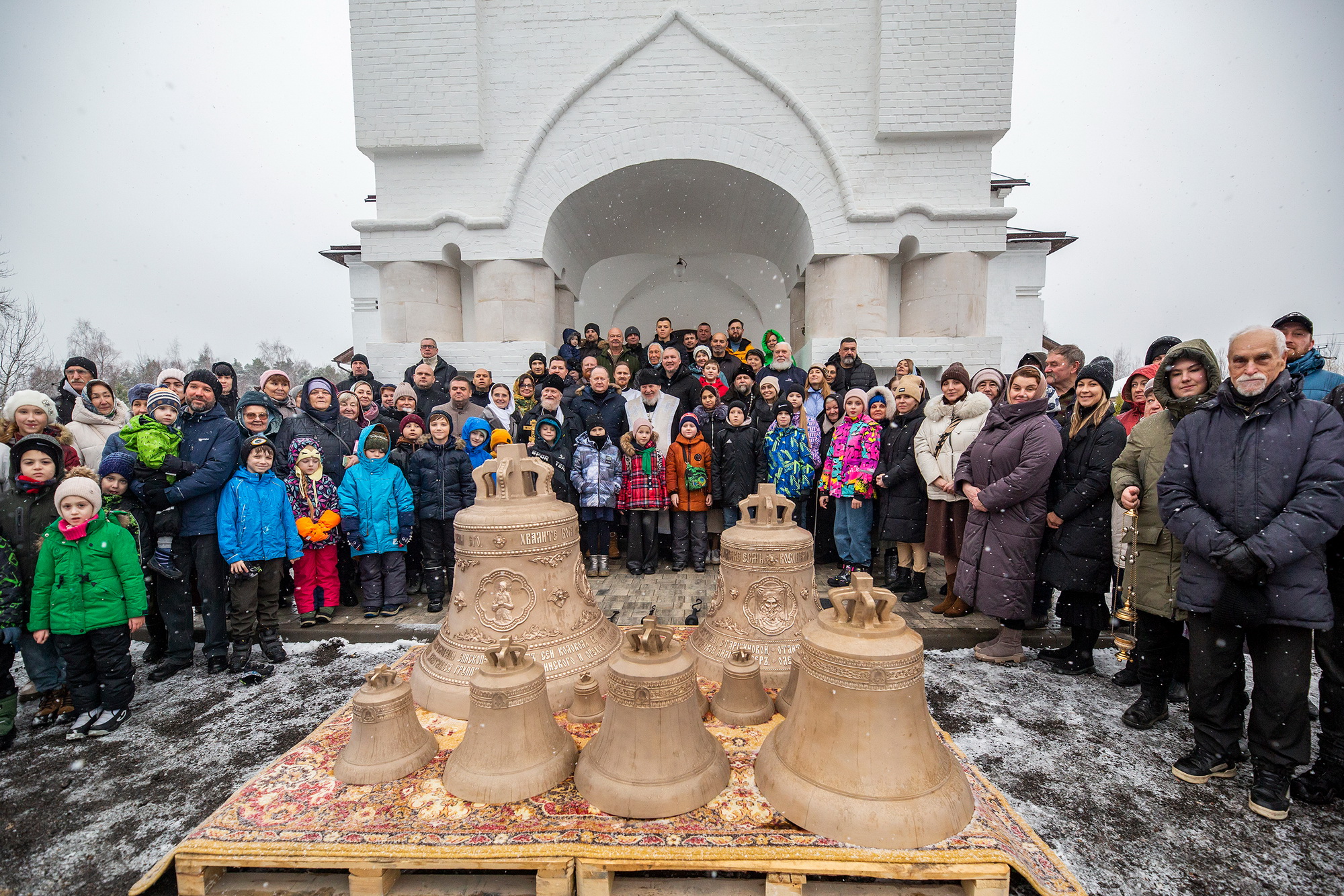 Колокола были изготовлены на средства руководителя компании «Пластмасс групп» Юрия Ивановича Гребе, его семьи и помощников на Московском колокольном заводе «ЛИТЭКС».