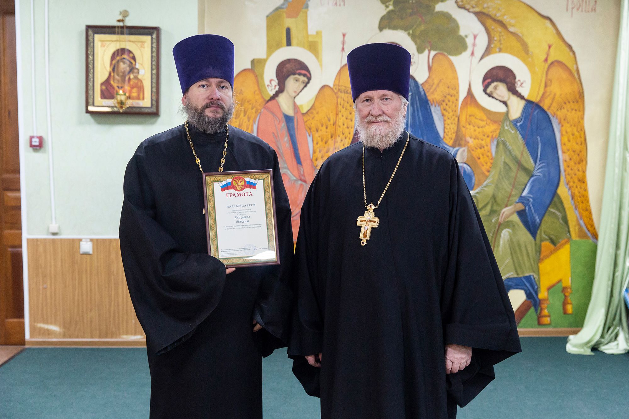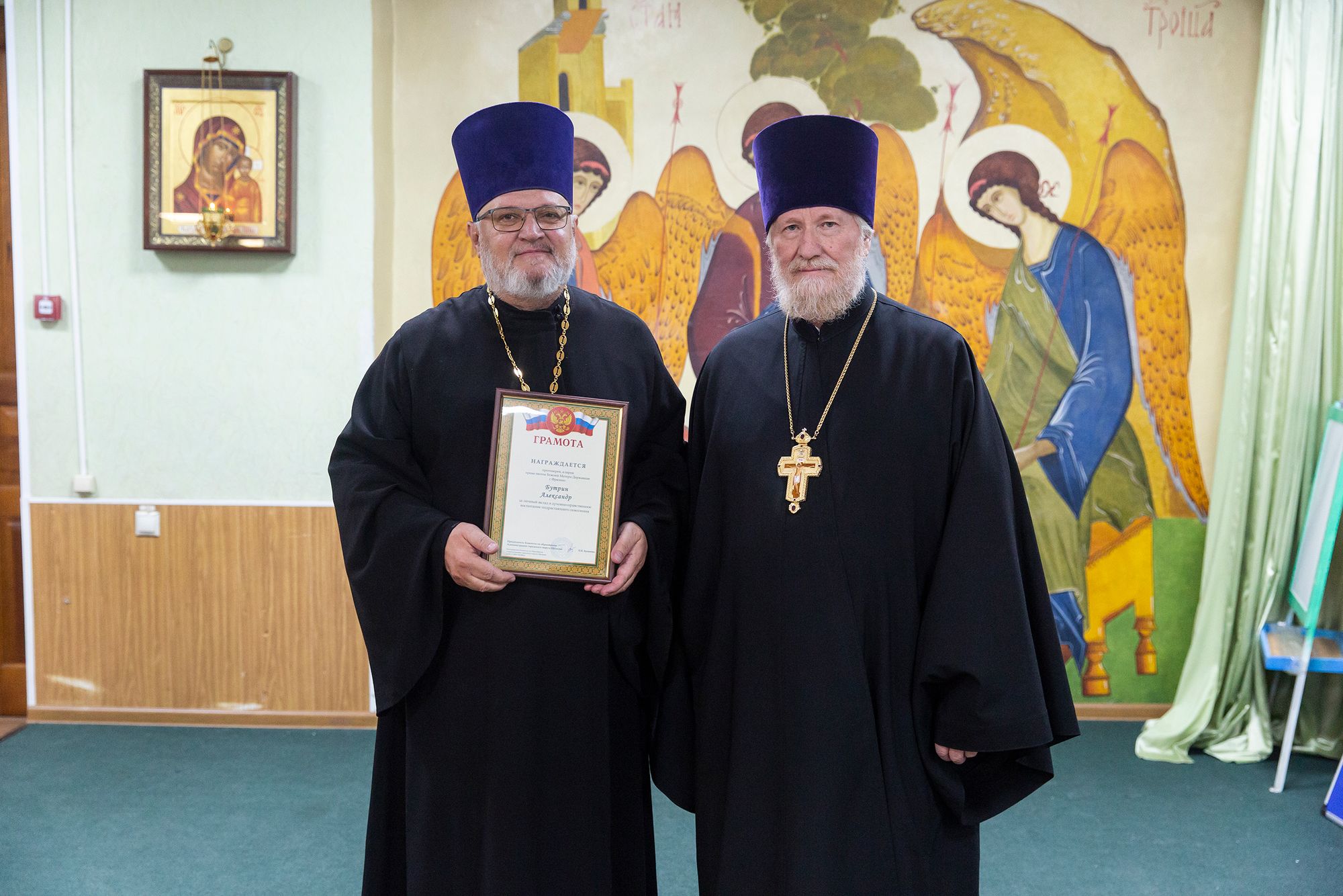 Отец благочинный вручил грамоты от комитета по образованию администрации городского округа Щёлково за личный вклад в духовно-нравственное воспитание подрастающего поколения духовенству благочиния и директорам приходских воскресных школ.