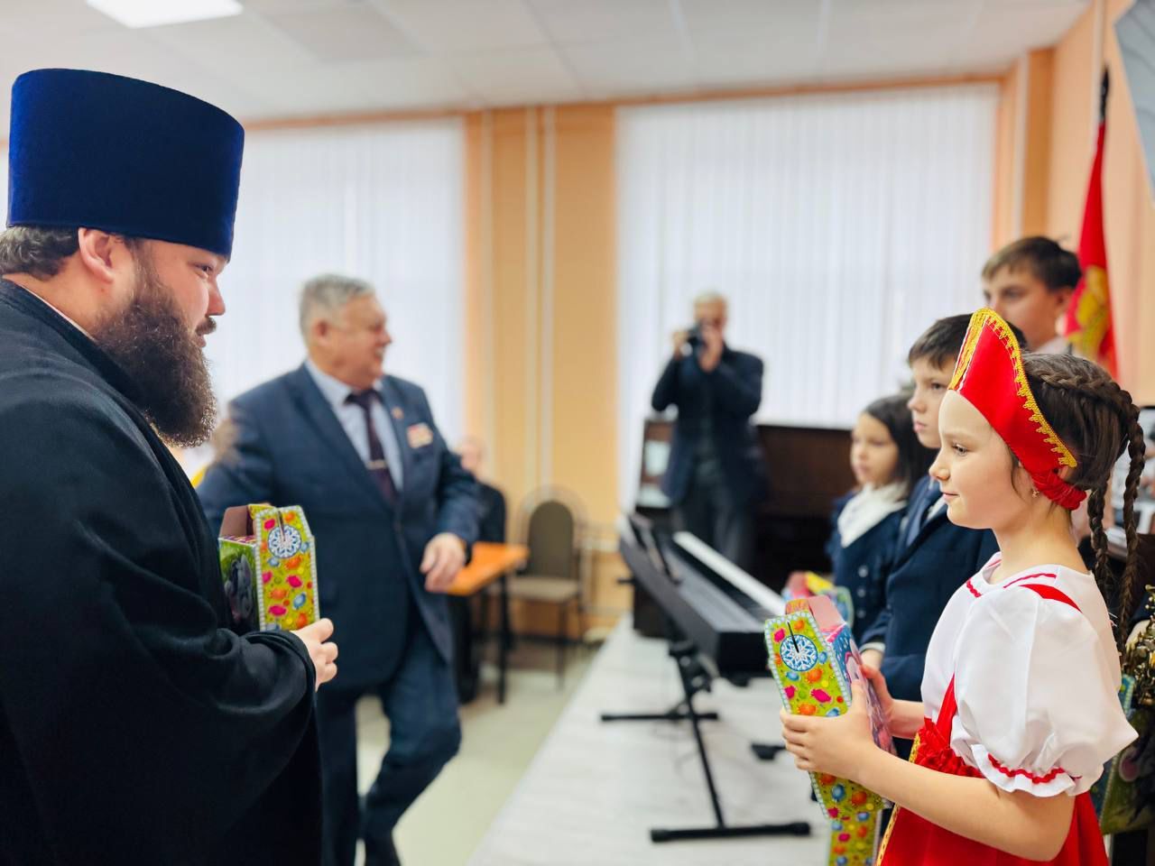 Отец Александр провёл духовную беседу с ветеранами, рассказал о празднике Рождества Христова, духовной жизни, молитве и ответил на вопросы собравшихся. В завершение встречи после музыкального выступления детей отец Александр вручил ветеранам подарки.