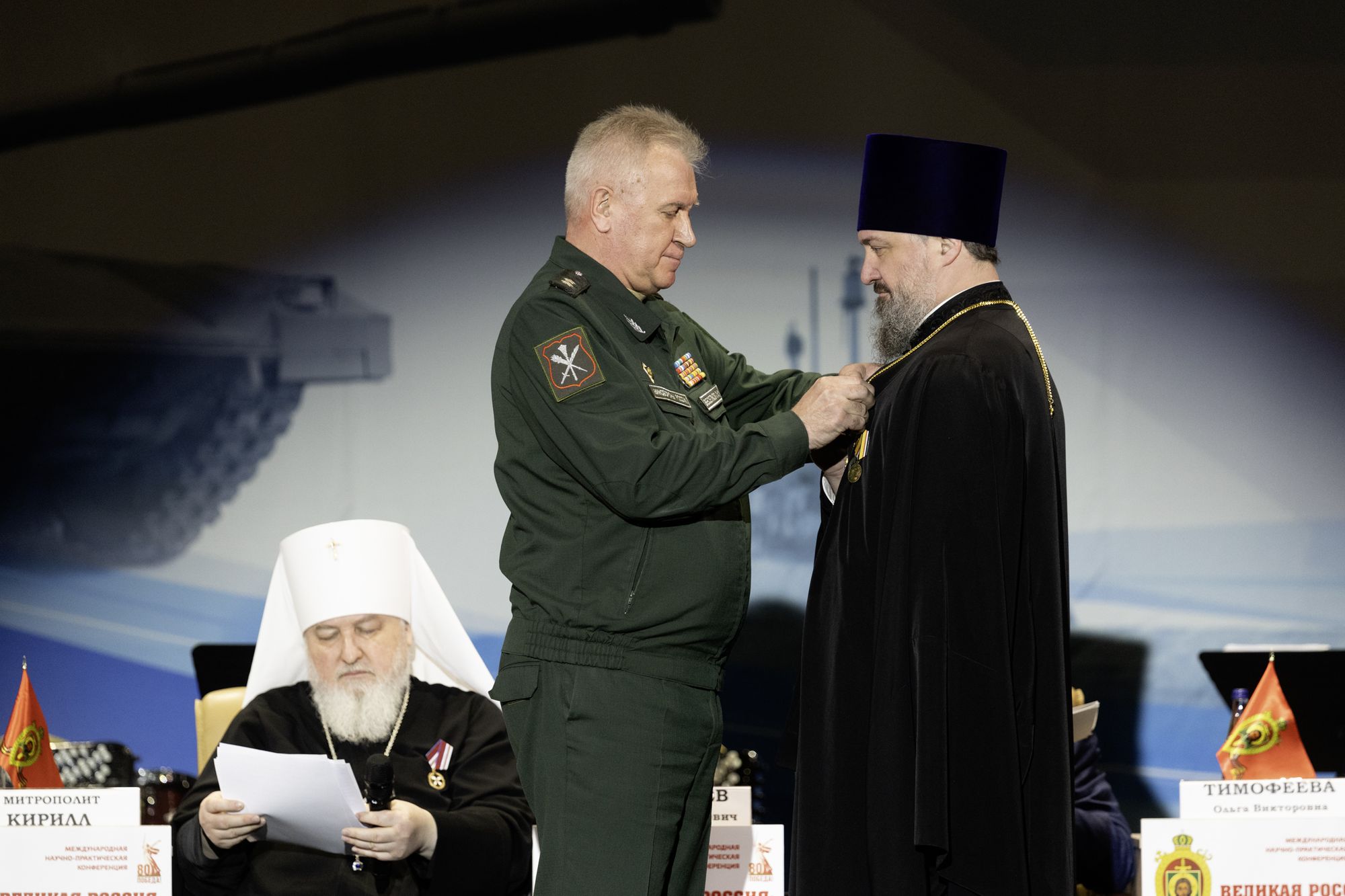 Медалями «За Веру и служение Отечеству» были удостоены: председатель Межъепархиального отдела по взаимодействию с Вооруженными Силами, правоохранительными органами и казачеством Московской митрополии протоиерей Марк Ермолаев, заместитель председателя отдела по взаимодействию с Вооруженными Силами, правоохранительными органами и казачеством Балашихинской епархии священник Василий Алфеев и референт Межъепархиального отдела по взаимодействию с Вооруженными Силами, правоохранительными органами и казачеством Московской митрополии священник Вячеслав Краснов.