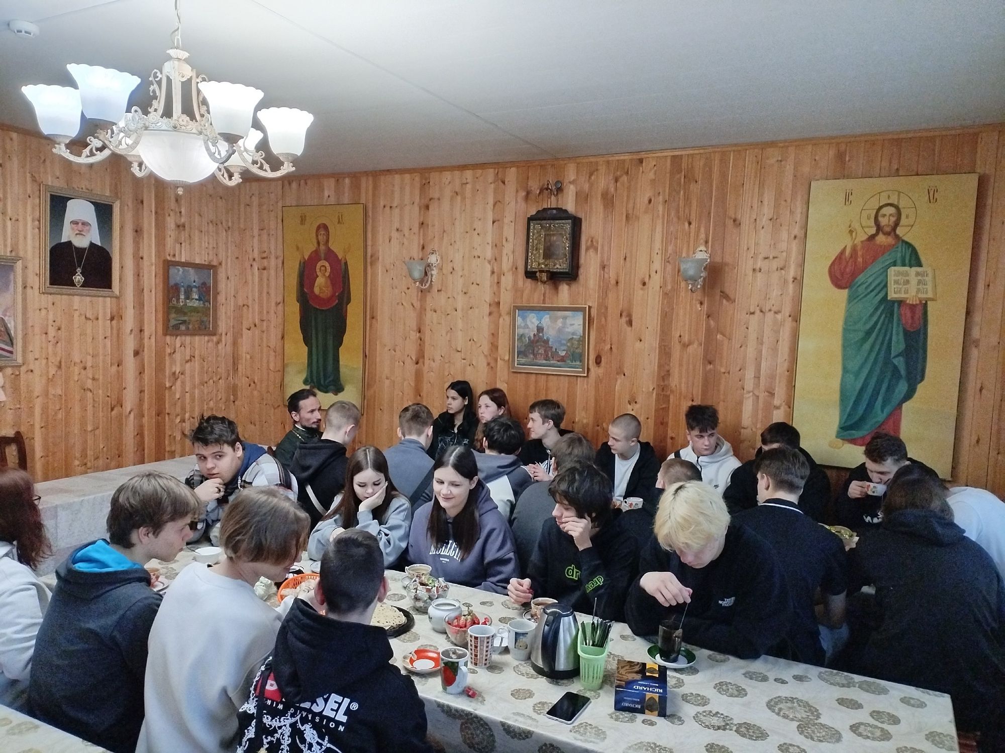 Встретил группу учащихся настоятель Параскевинского храма деревни Горбачиха священник Владислав Решетников, который провёл с гостями духовную беседу о добре и зле и о смысле Великого поста.