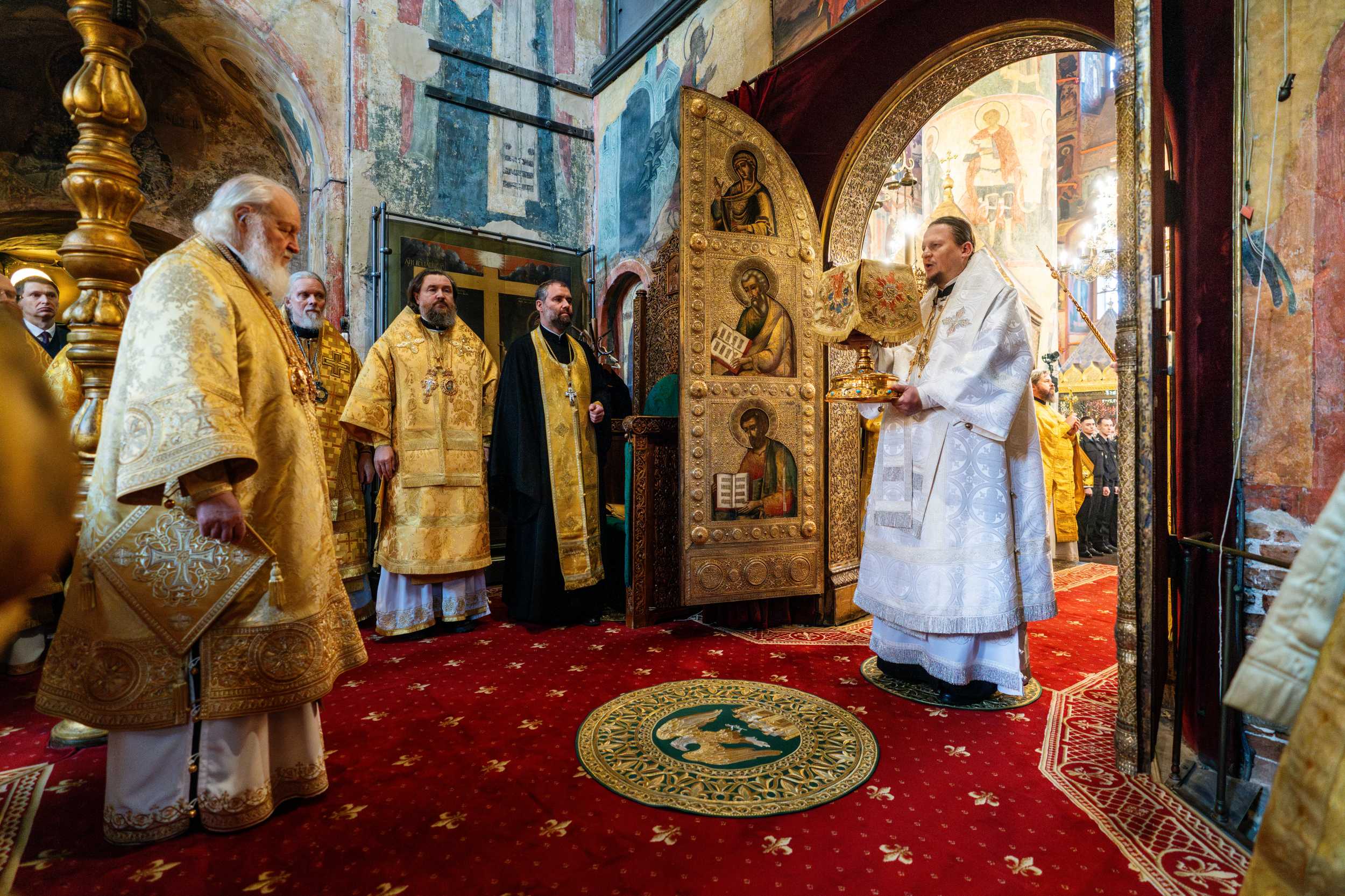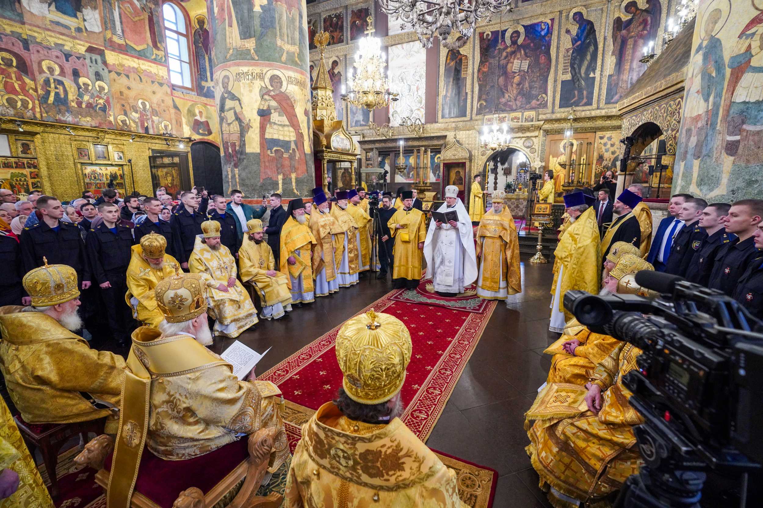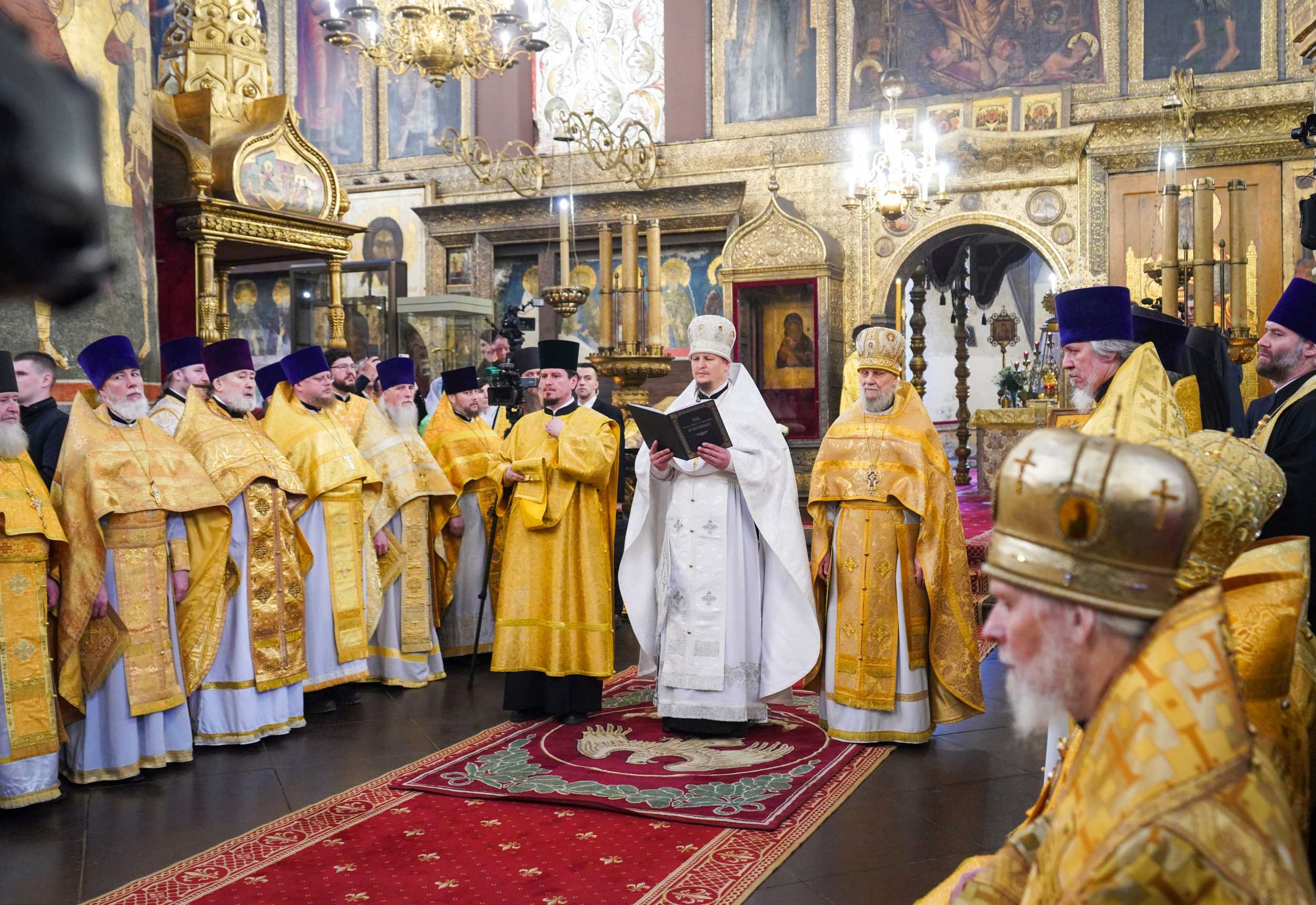 2 марта 2025 года, в Неделю сыропустную, воспоминание Адамова изгнания (Прощеное воскресенье), день памяти священномученика Ермогена, Патриарха Московского и всея Руси, чудотворца, Святейший Патриарх Московский и всея Руси Кирилл совершил Божественную литургию в Патриаршем Успенском соборе Московского Кремля, где почивают мощи святителя Ермогена.