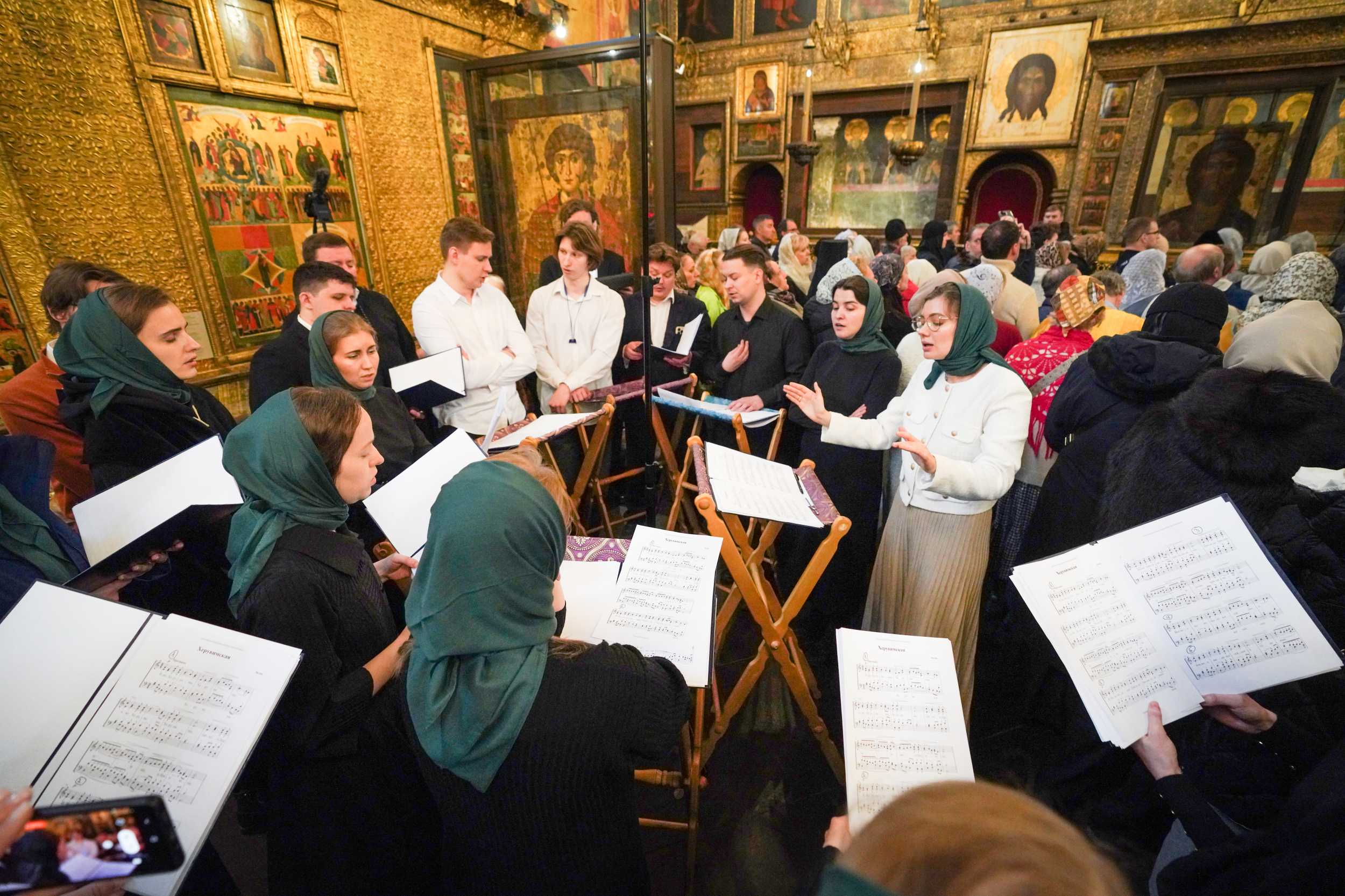 Богослужебные песнопения исполнил сводный молодежный хор г. Москвы под управлением А.М. Харьковой.