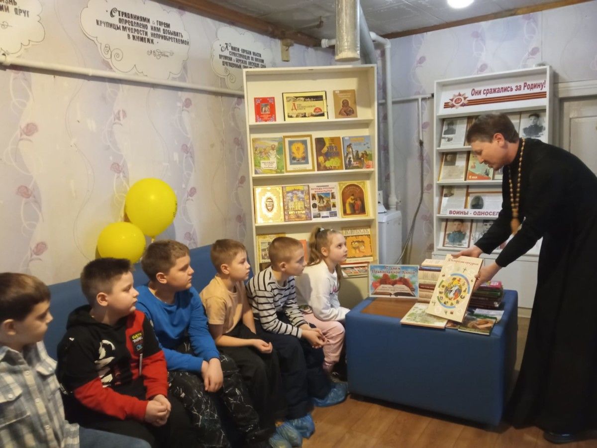 Настоятель Сергиевского храма города Балашихи священник Антоний Овчинников посетил библиотеку №3 имени Андрея Белого микрорайона Кучино и провёл тематическую встречу с учащимися начальных и 4-х классов средней школы №8.