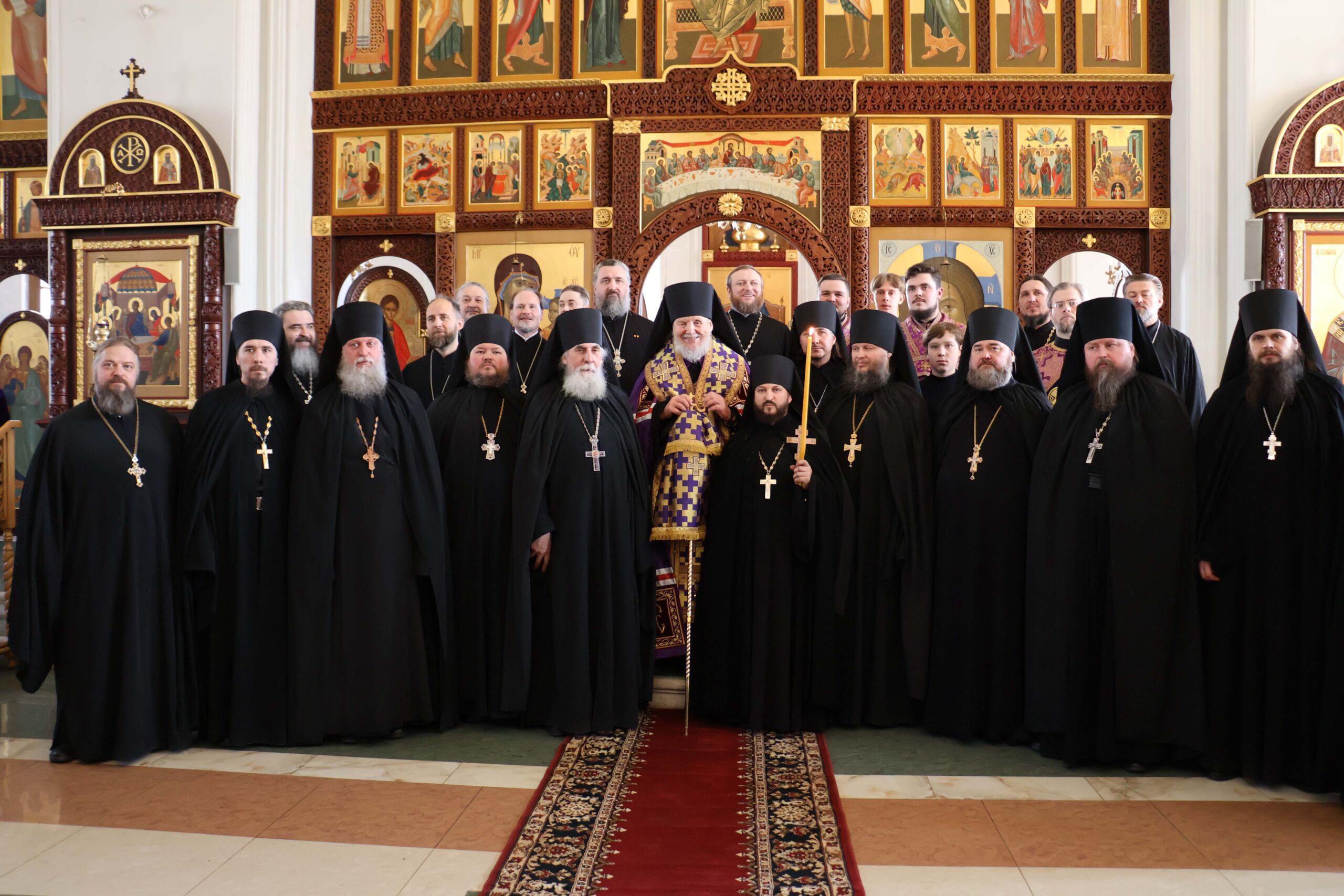 Его Преосвященству сослужили благочинный монастырей Балашихинской епархии и настоятель обители игумен Евмений (Лагутин), благочинный Орехово-Зуевского церковного округа протоиерей Андрей Коробков, благочинный Богородского церковного округа протоиерей Марк Ермолаев, благочинный Солнечногорского церковного округа Сергиево-Посадской епархии протоиерей Антоний Тирков, благочинный Долгопрудненского церковного округа Сергиево-Посадской епархии протоиерей Андрей Хмызов, настоятель Покровско-Васильевского монастыря игумен Андрей (Тонков), настоятель Спасо-Преображенского Гуслицкого монастыря игумен Серафим (Голованов), настоятель Борисоглебского монастыря Сергиево-Посадской епархии игумен Августин (Шорников), настоятель Николо-Радовицкого монастыря Коломенской епархии игумен Августин (Французов), духовенство обители и гости в священном сане.