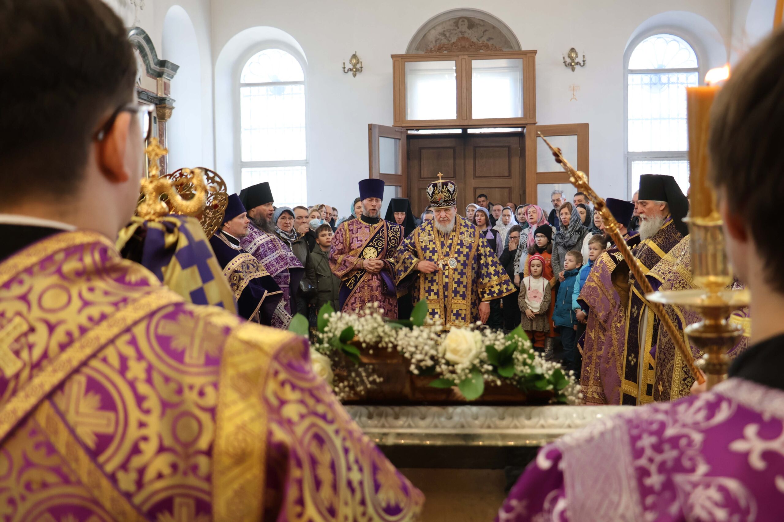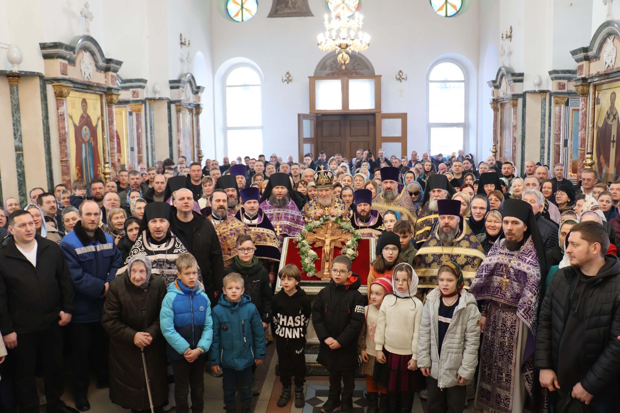 По заамвонной молитве было совершено поклонение Честному Кресту Господню и возглашены уставные многолетия.