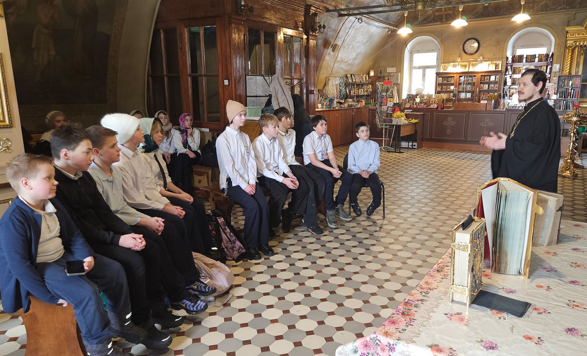 17 марта Богородицерождественский храм посёлка Образцово посетили учащиеся 6 класса Краснознаменской школы. Настоятель прихода священник Димитрий Выдумкин познакомил ребят с историей книгопечатания на Руси.