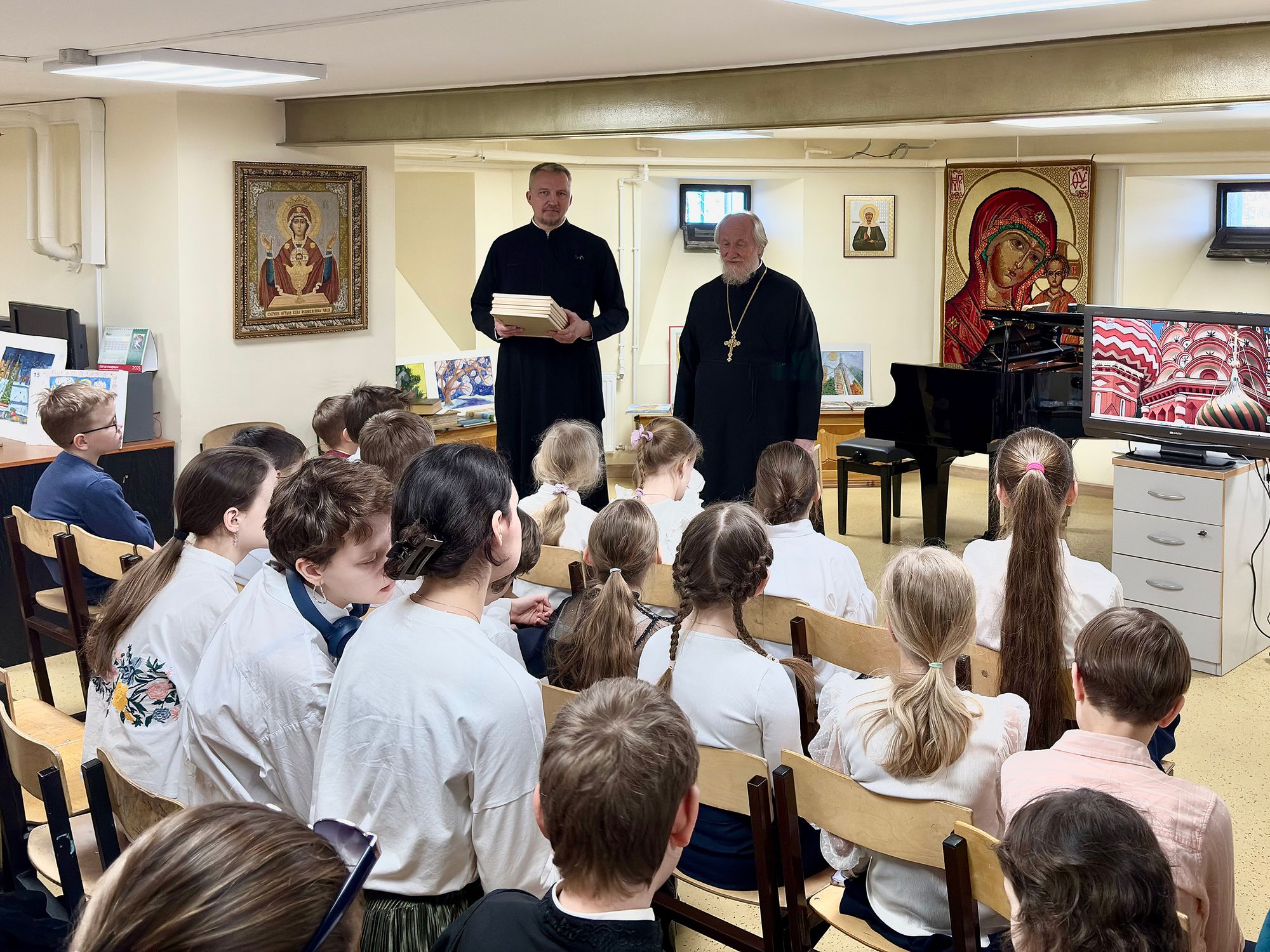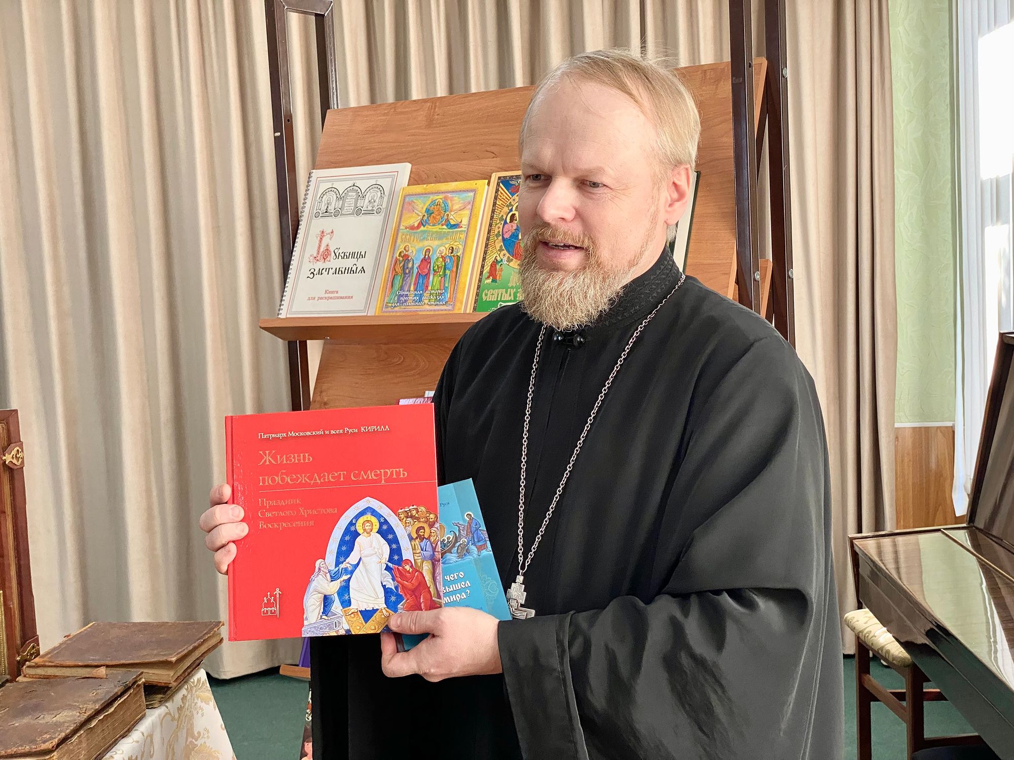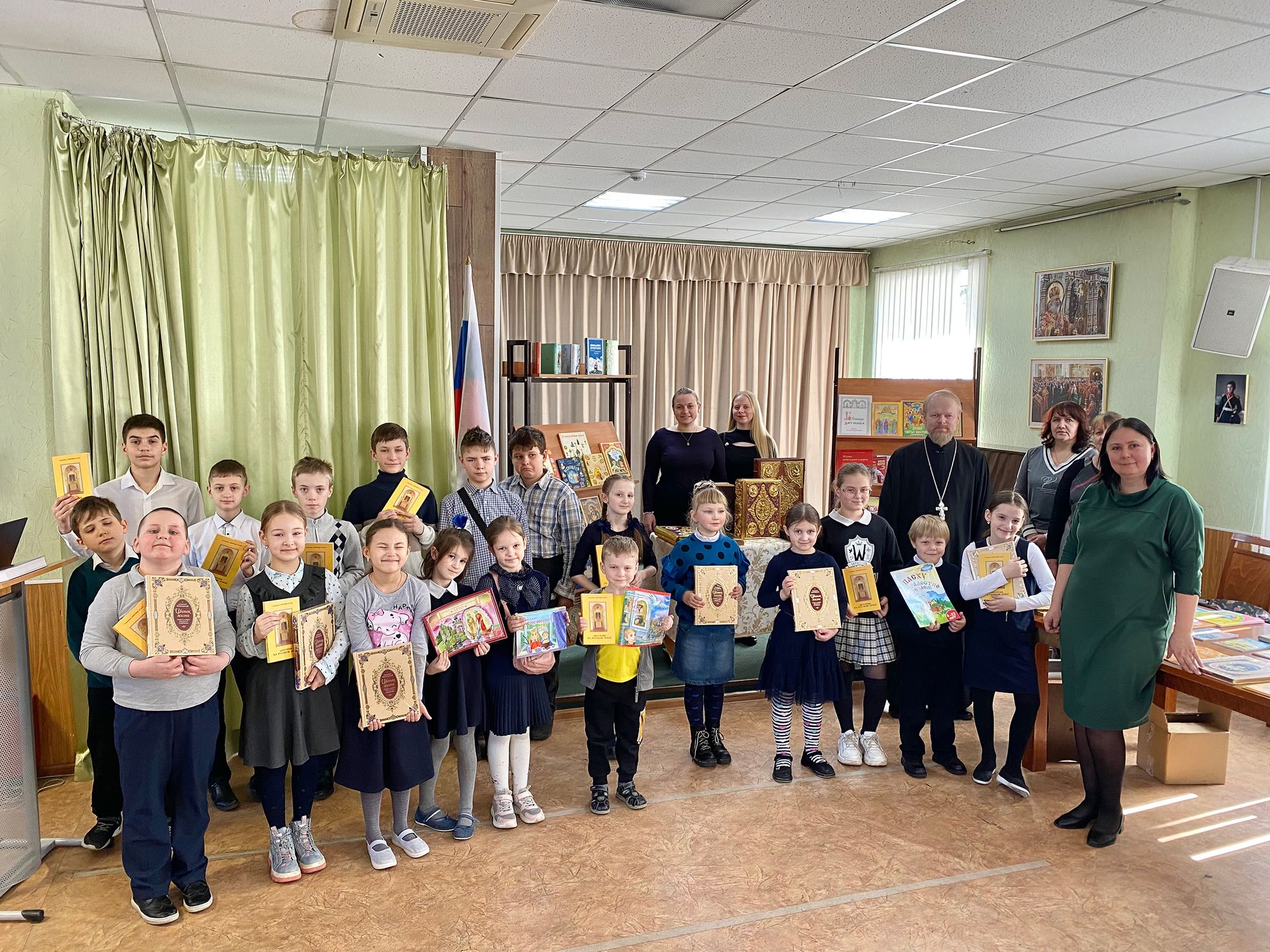 14 марта священник Владимир Тарасюк передал детской библиотеке города Фрязино жития святых и детские издания Библии в дар от прихода Державного храма Наукограда.