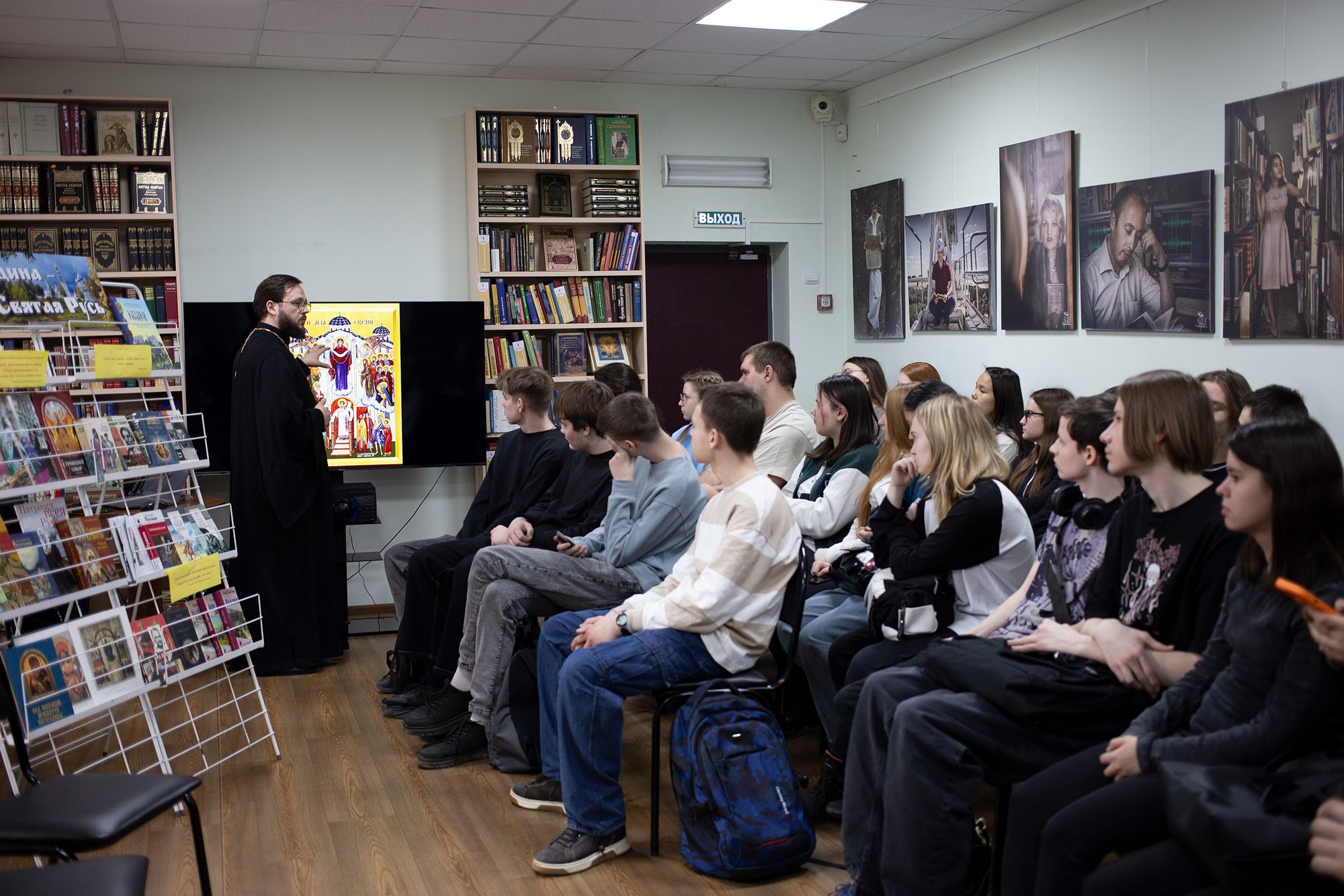 В этот же день подобная встреча была организована в Православном духовно-просветительском центре «Благовест» при городской библиотеке семейного чтения, который в этот день посетили учащиеся Щёлковского колледжа информационных технологий и права. Сотрудники центра «Благовест», артисты Ансамбля казачьей песни «Кладезь» и клирик Троицкого собора священник Роман Галиев рассказали собравшимся ребятам о православных традициях казачества на Руси.