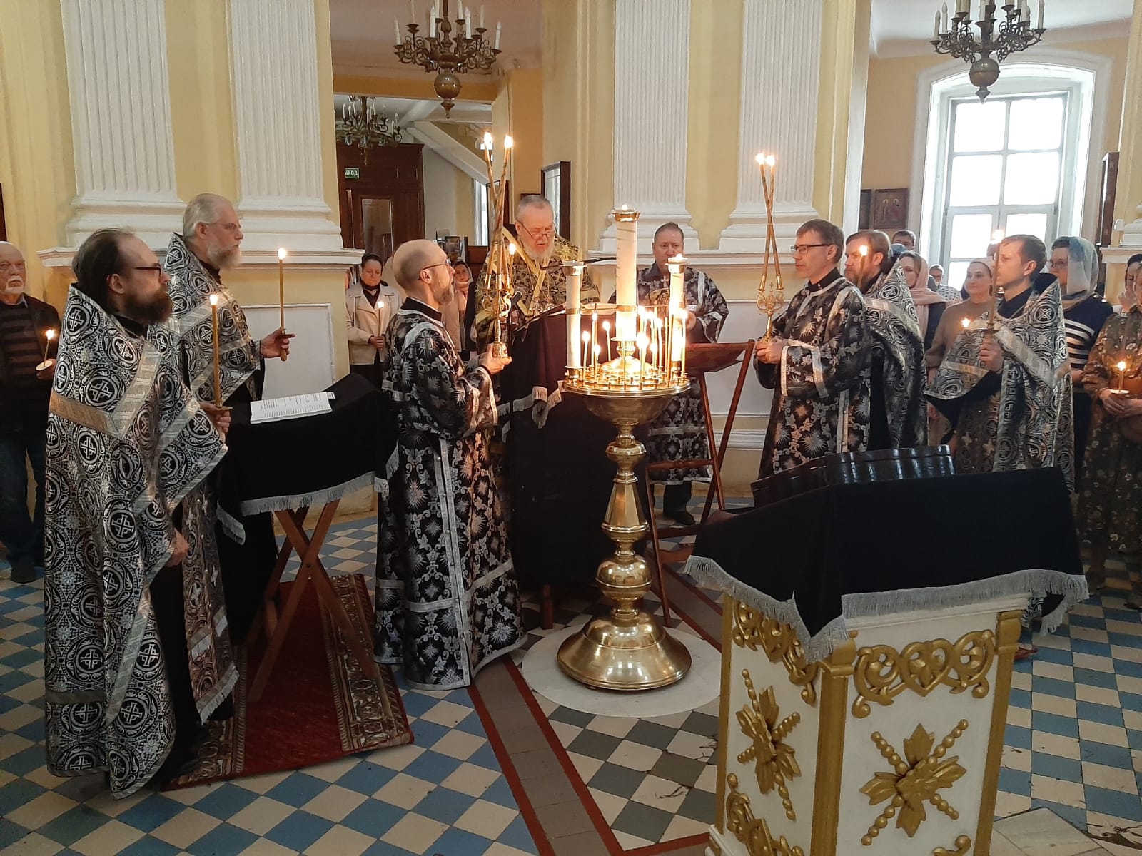 Вечером 17 апреля, накануне Великой Пятницы, воспоминания Святых спасительных Страстей Господа нашего Иисуса Христа, епископ Балашихинский и Орехово-Зуевский Николай совершил утреню с чтением 12-ти страстных Евангелий в Преображенском кафедральном соборе Балашихи.