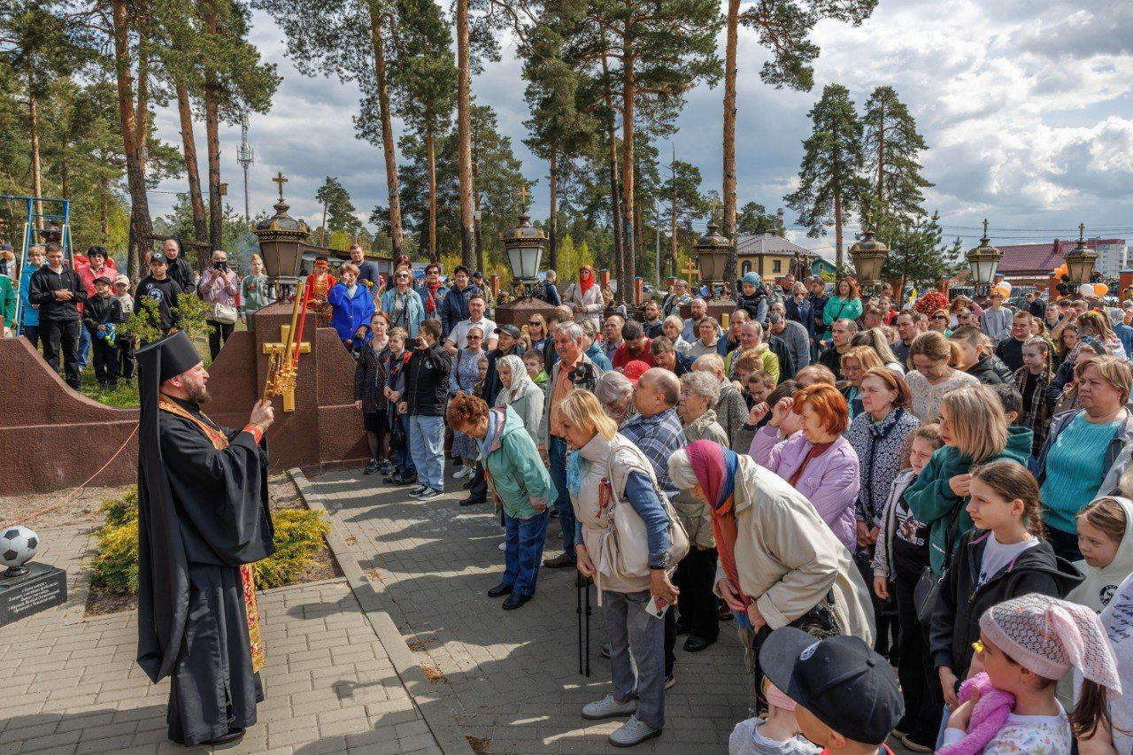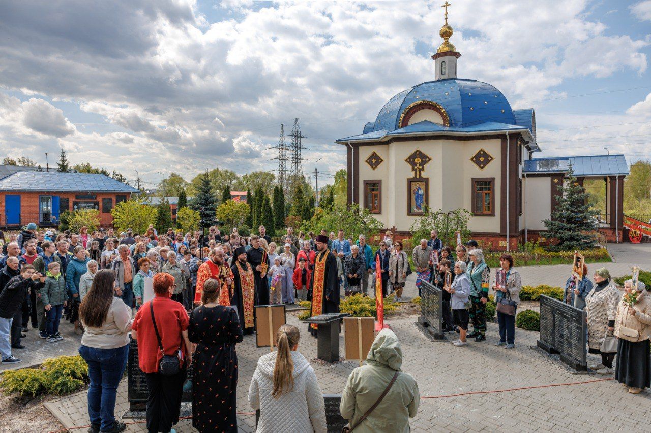 Прихожане с портретами героев выстроились на «Аллее памяти».