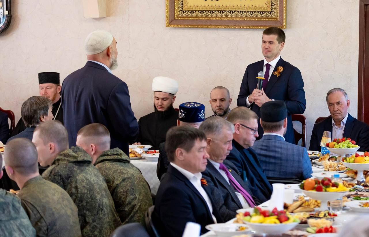 Выступающие поздравили присутствующих с приближающимся Днём Победы, выражая слова благодарности в адрес ветеранов Великой Отечественной войны и тружеников тыла, и единодушно подчеркнули силу многонационального и многорелигиозного российского народа, заключённую в его единстве, которая помогает и сейчас в период испытаний.