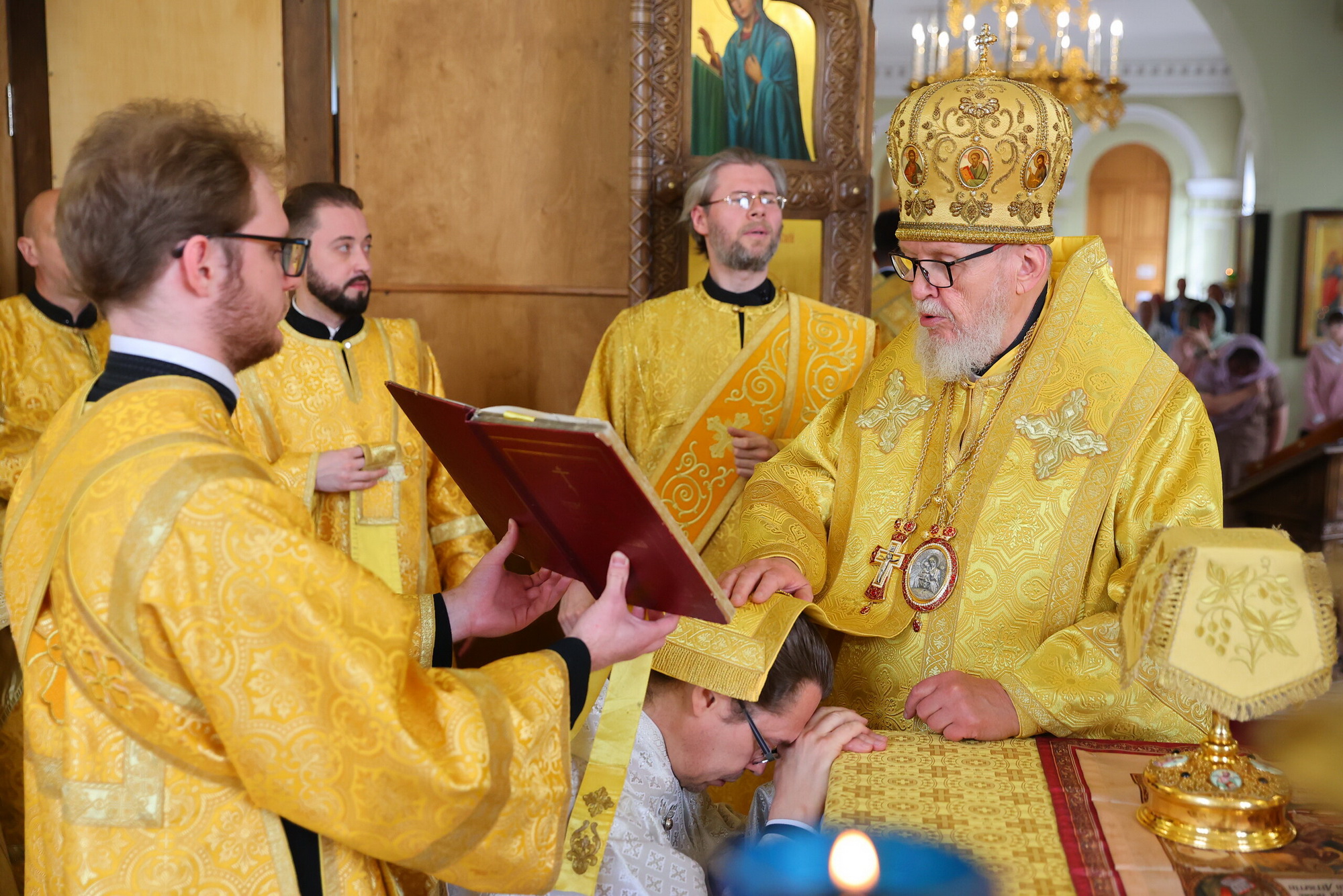 За богослужением пономарь храма Аркадий Михайлович Нефёдов был рукоположен во диакона.
