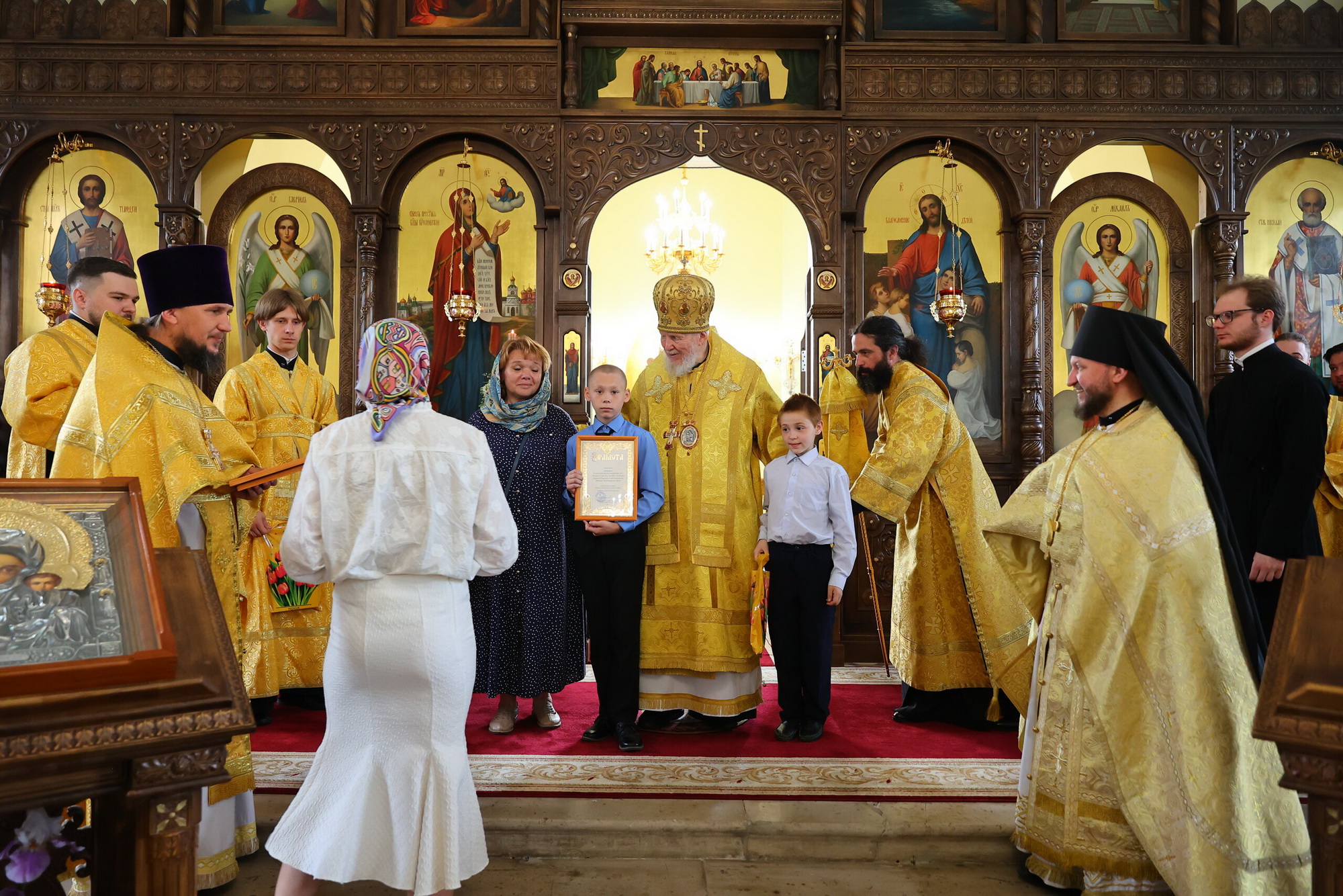 Затем Его Преосвященство обратился к сослужившему духовенству и богомольцам с архипастырским словом, после чего вручил грамоты победителям епархиального благотворительного конкурса «Православная книга своими руками».