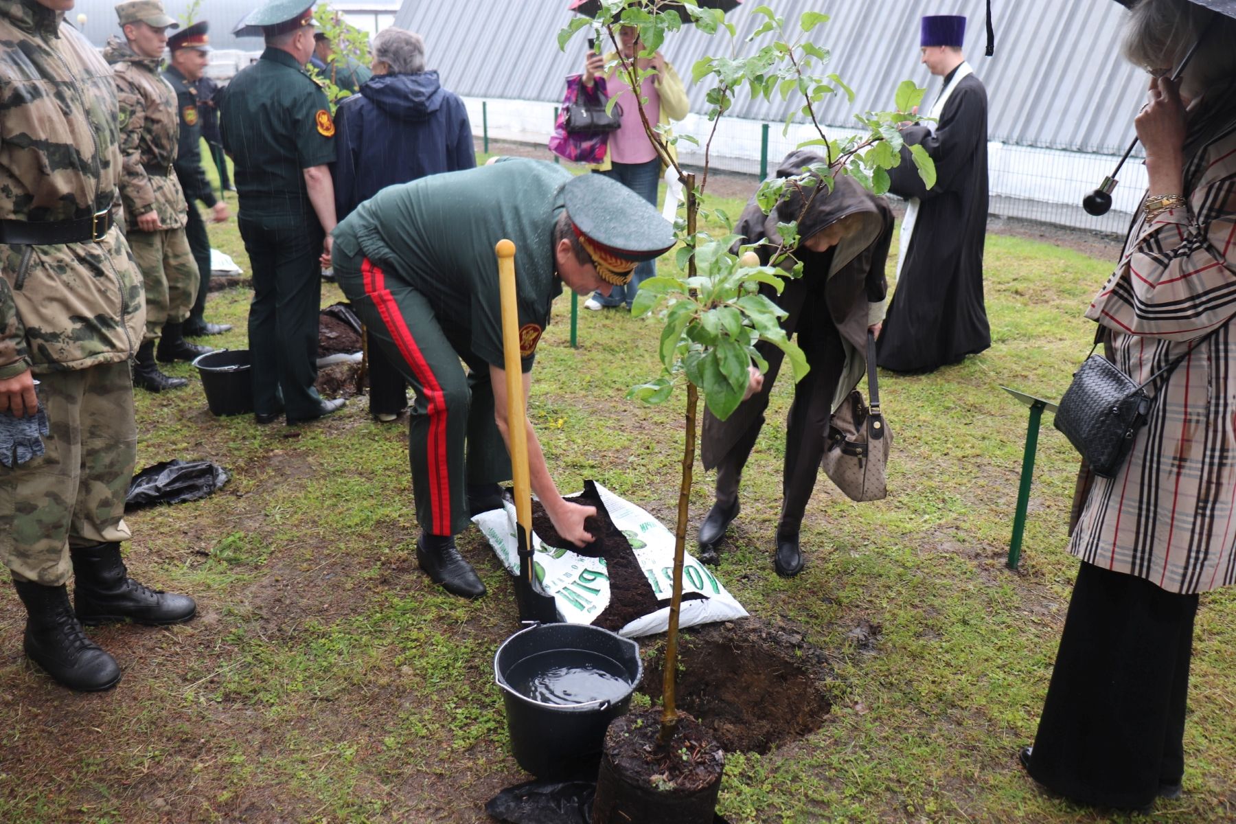 Затем были высажены саженцы плодовых деревьев и установлены таблички с именами бывших командиров центра.