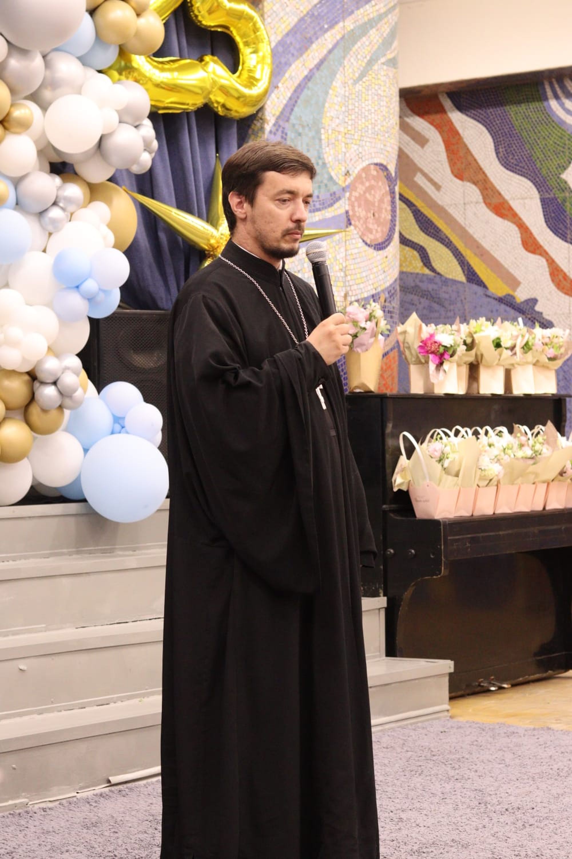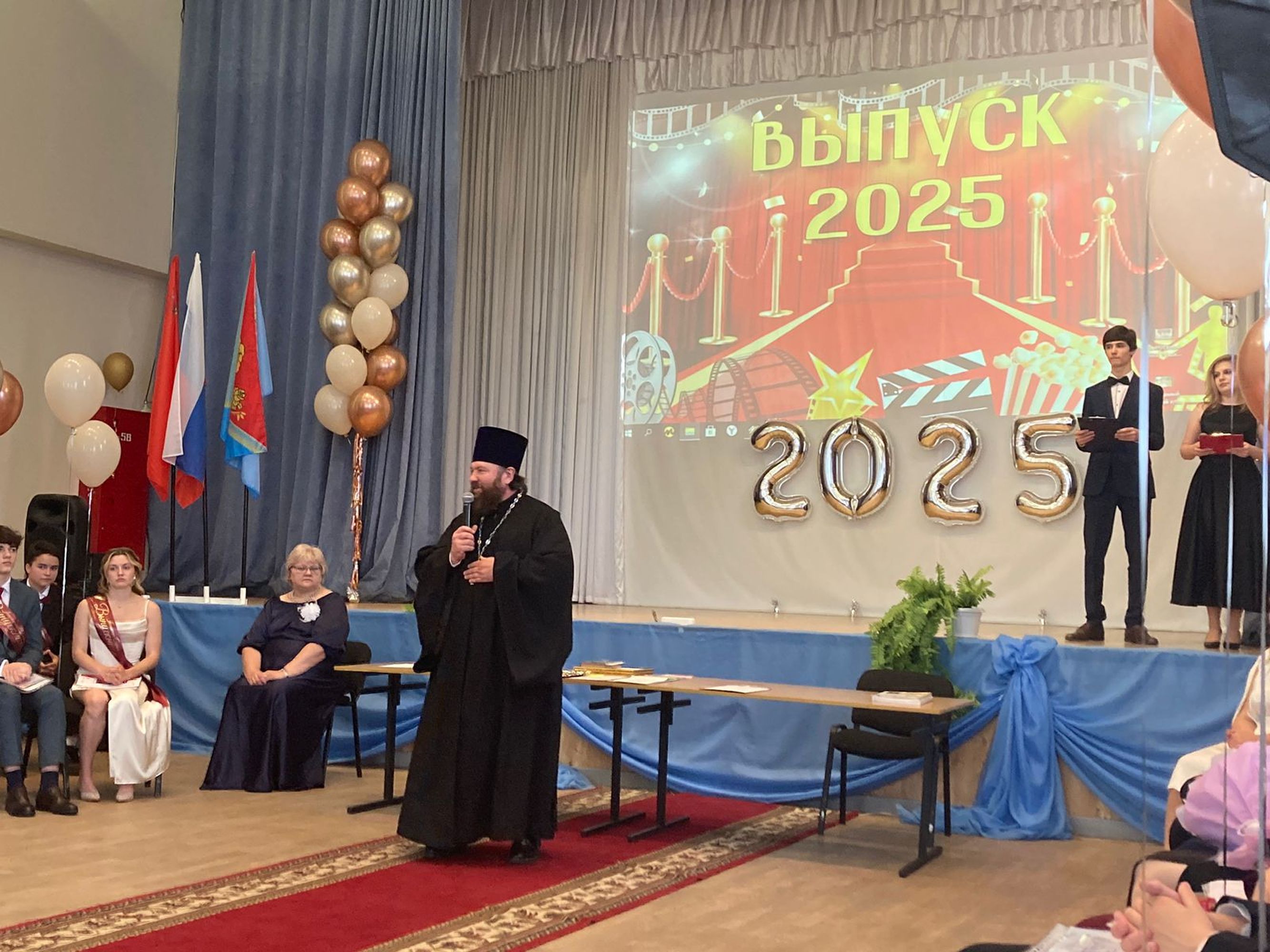 28 июня в доме культуры «Октябрь» города Павловский Посад состоялся общегородской выпускной, на котором чествовали обладателей золотых и серебряных медалей. В мероприятии приняли участие первый заместитель главы Павлово-Посадского городского округа Ф. А. Ефанов, благочинный Павлово-Посадского церковного округа священник Александр Анохин, начальник окружного управления образования Е. В. Ларькова, педагоги, учащиеся и широкая общественность. Отец Александр обратился к собравшимся с приветственным словом.