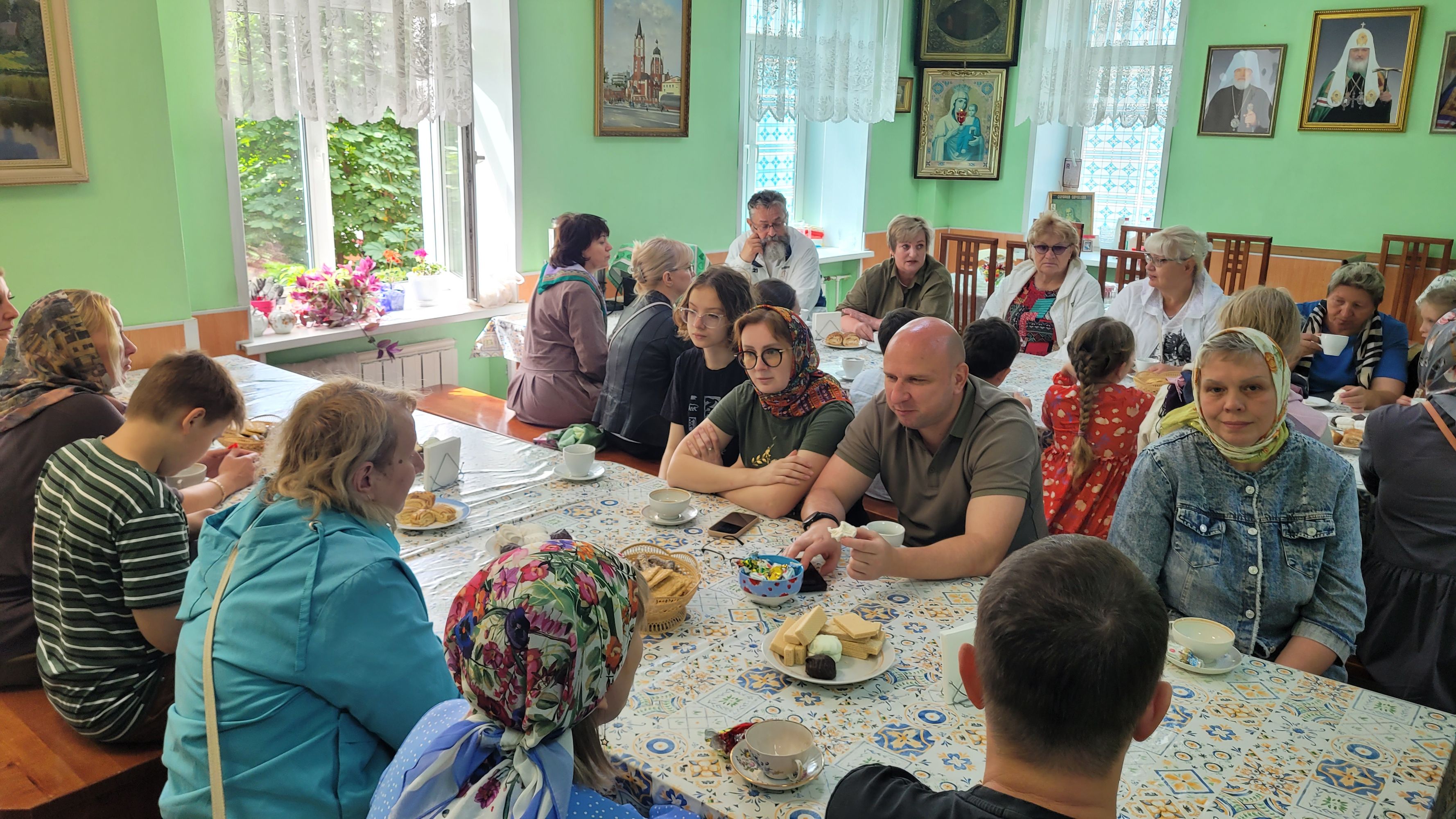 Семейная гостиная продолжилась за чаепитием в трапезной Троицкого собора, где её участники поделились друг с другом переживаниями и получили духовную поддержку от священнослужителей.