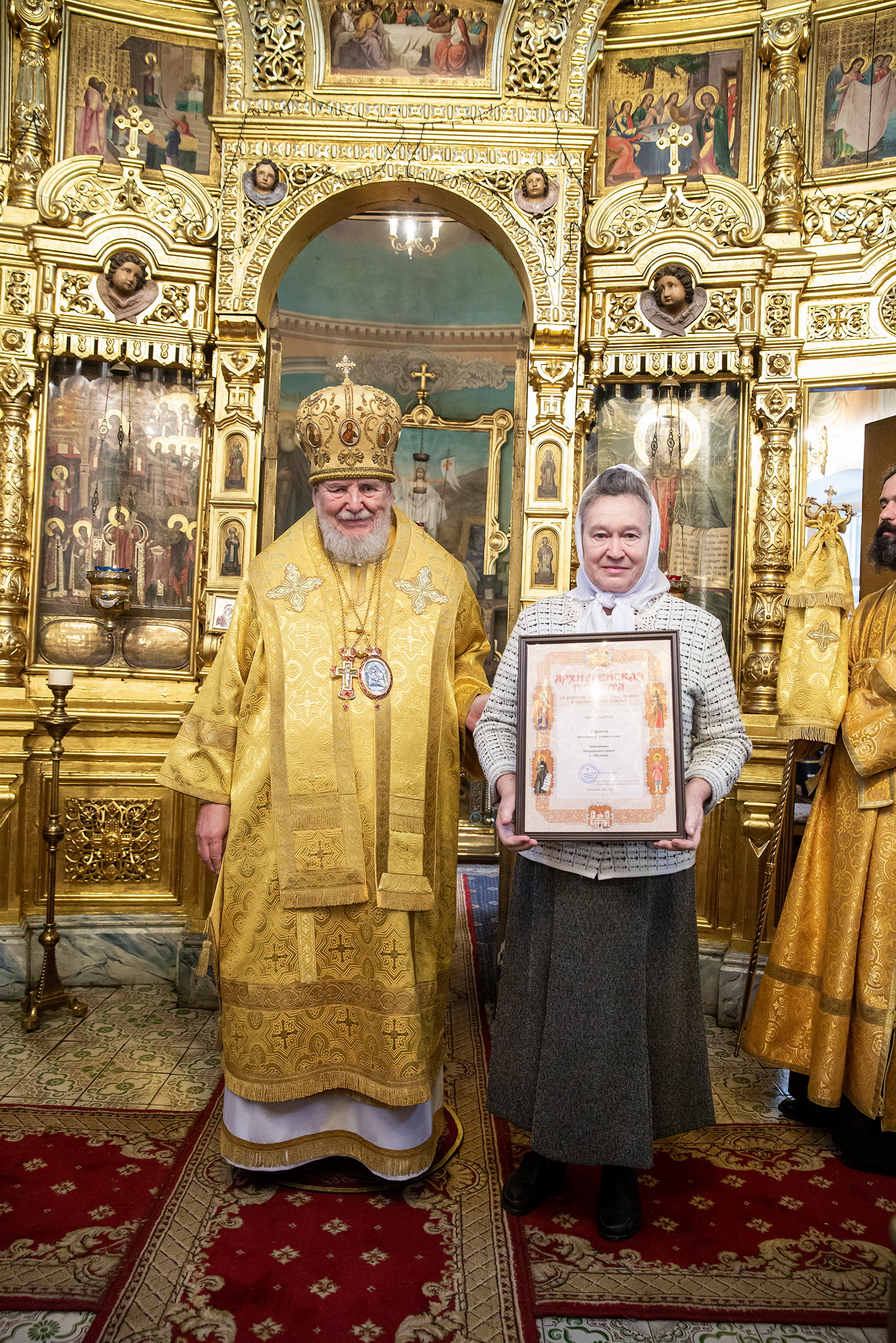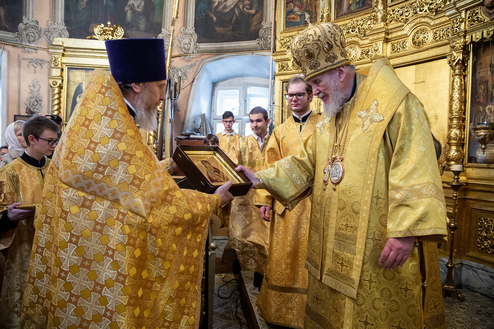 По окончании Литургии отец настоятель поблагодарил владыку Николая за совершённое богослужение и преподнёс ему Владимирскую икону Божией Матери.