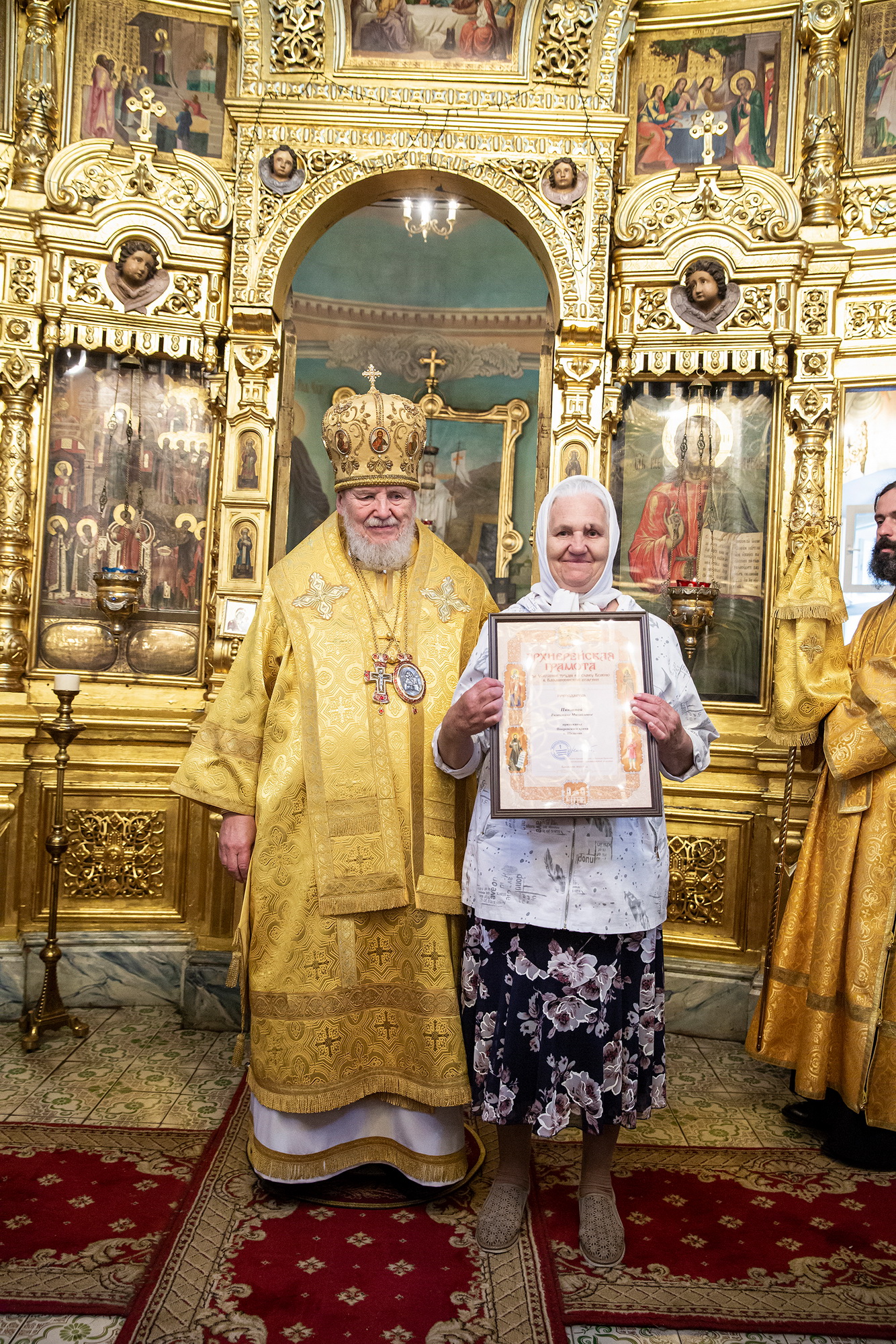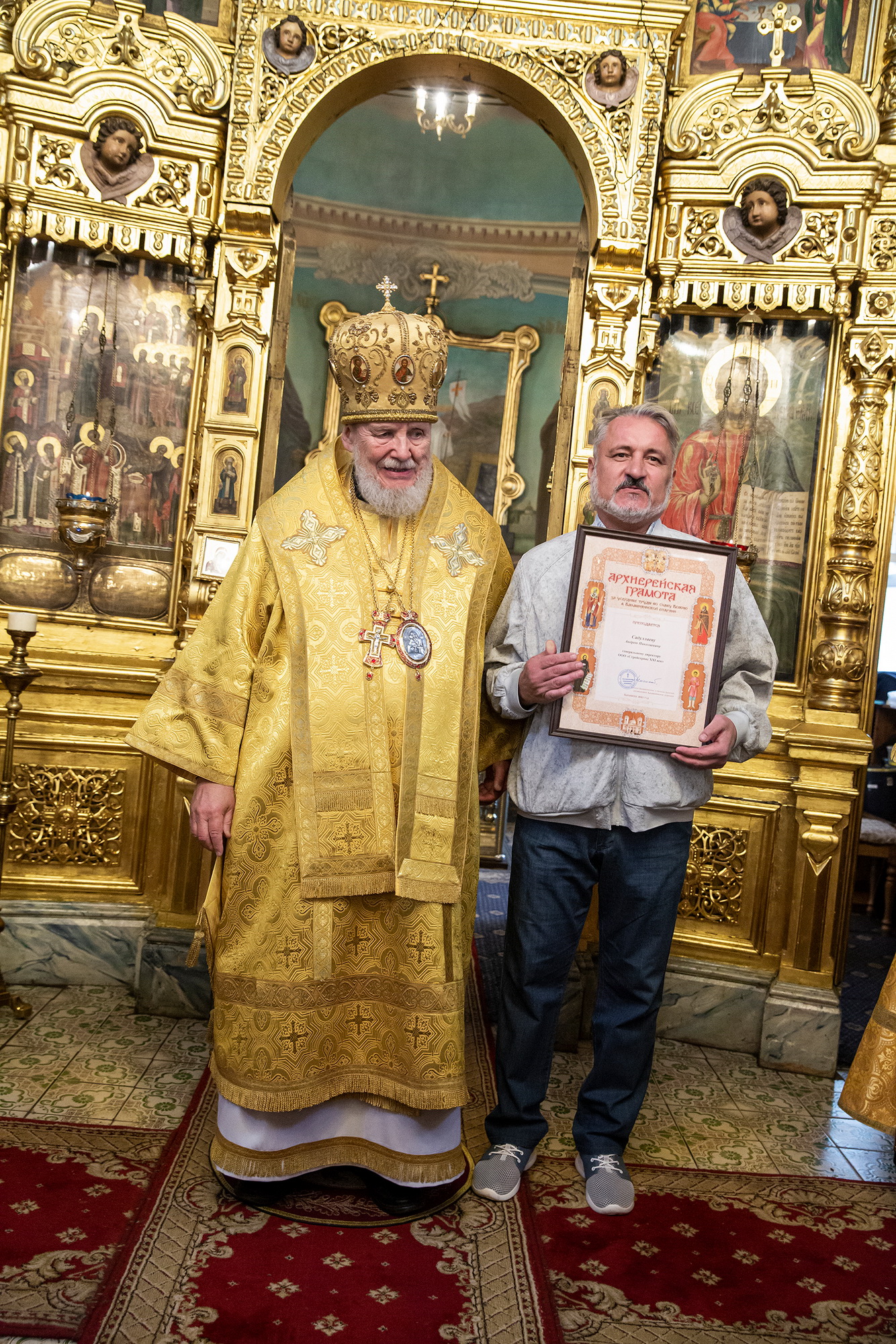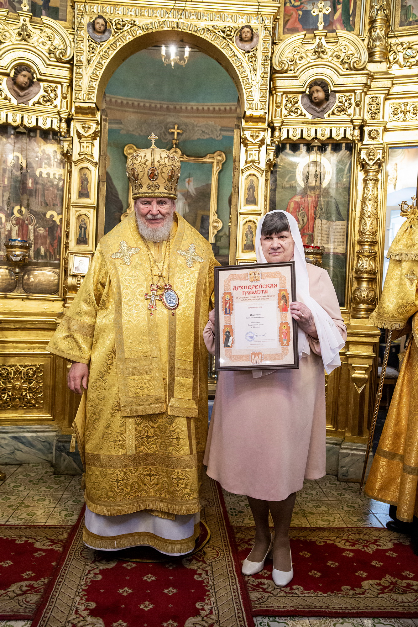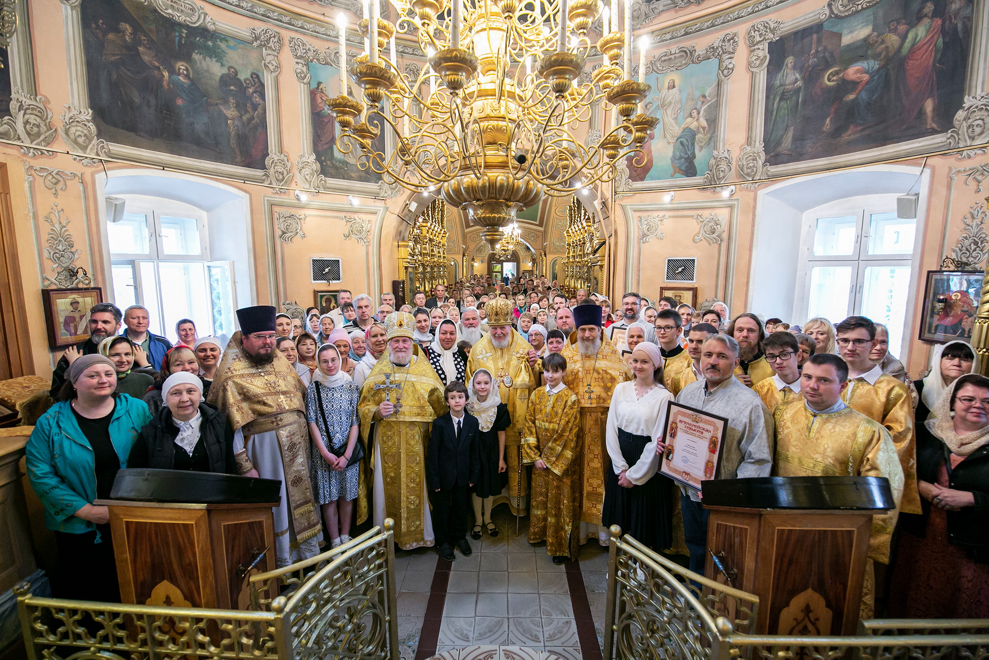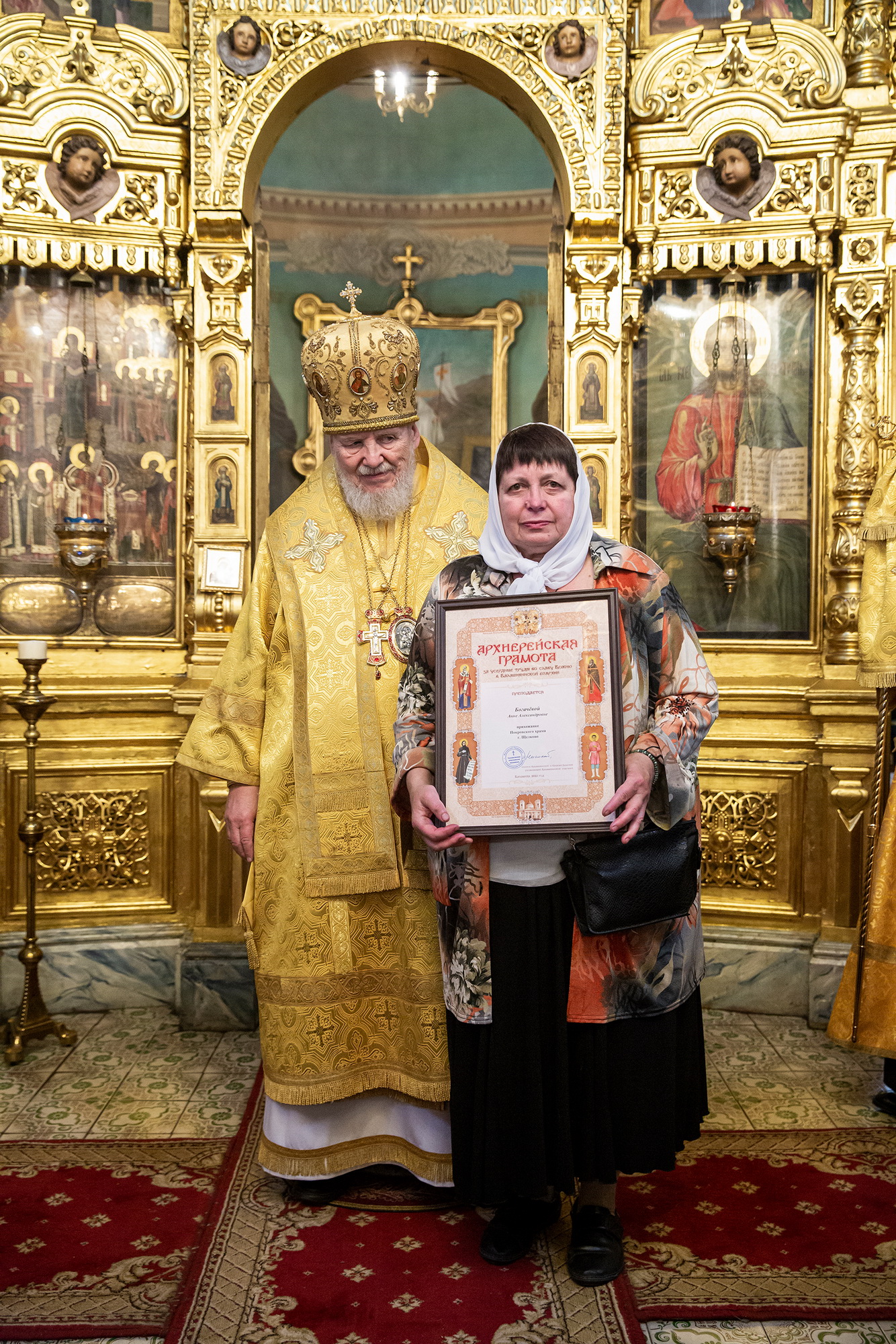 Затем Его Преосвященство обратился к духовенству и молящимся с архипастырским словом, после чего вручил архиерейские грамоты Балашихинской епархии сотрудникам прихода.