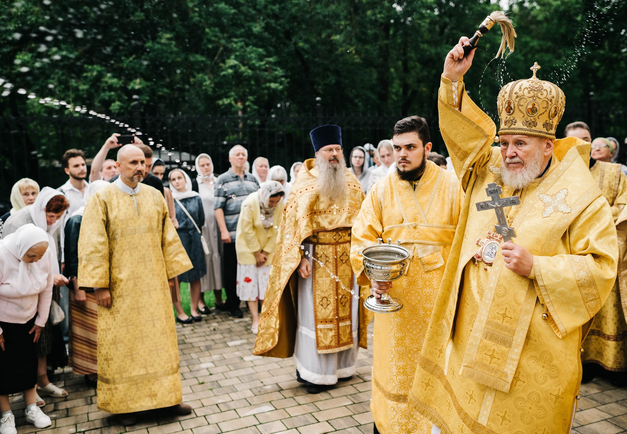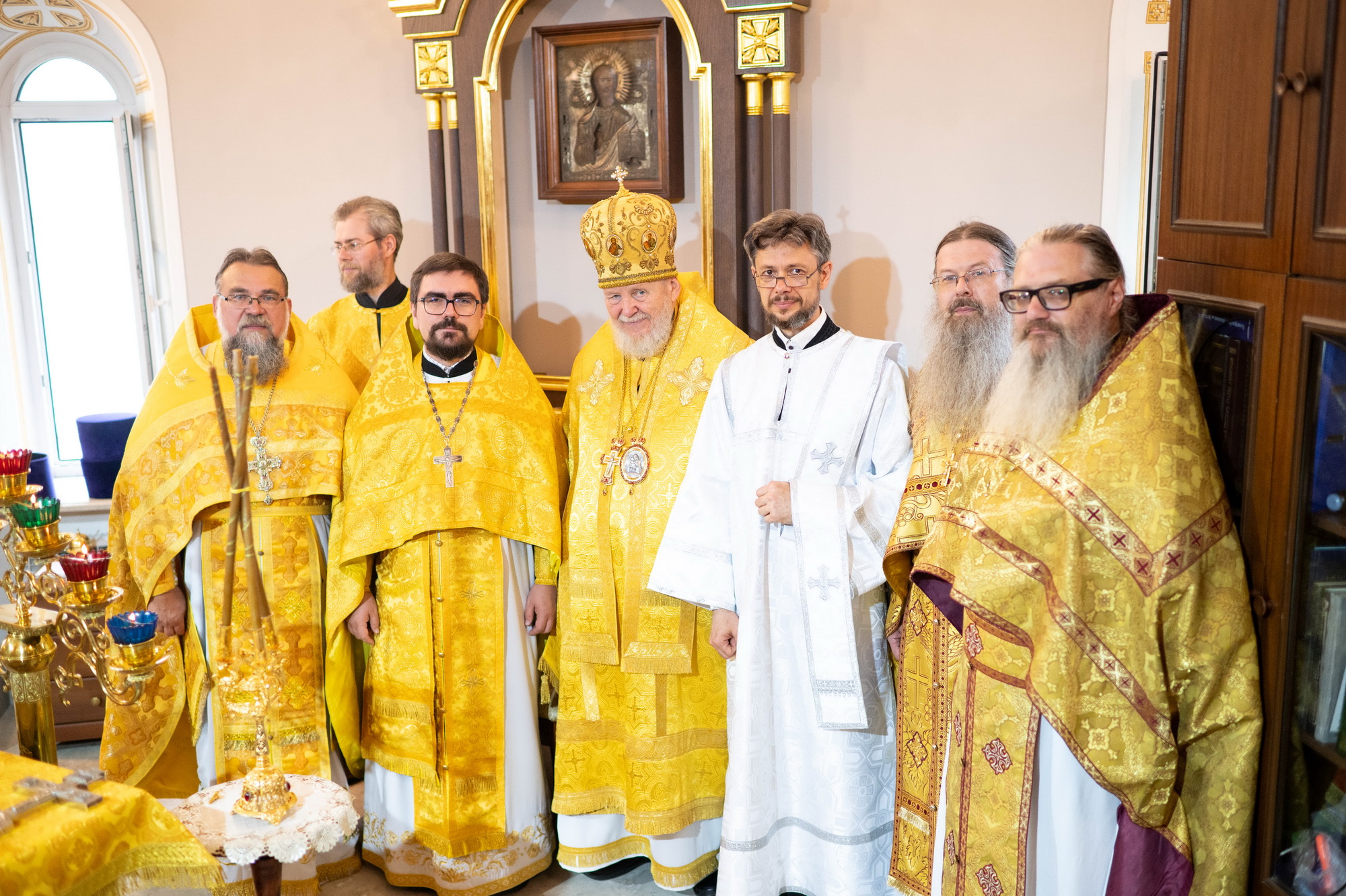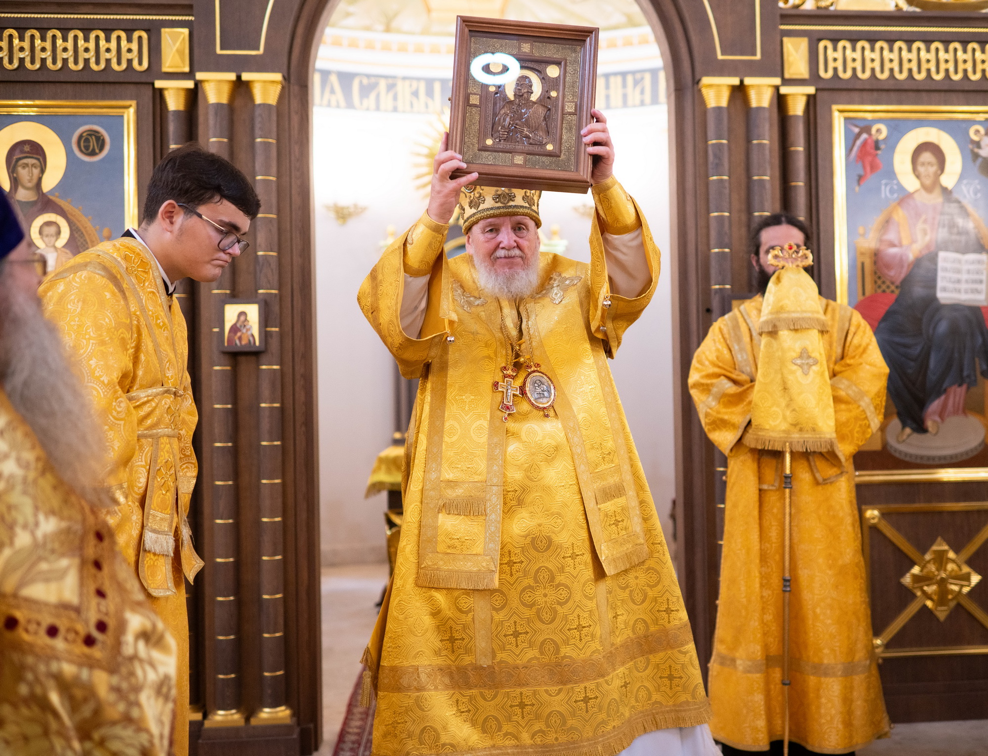 По окончании Литургии был совершён уставной крестный ход, вознесена молитва святому праведному воину Феодору и возглашены уставные многолетия, после чего отец настоятель поблагодарил владыку Николая за совершённое богослужение и преподнёс ему резную икону святого праведного воина Феодора.
