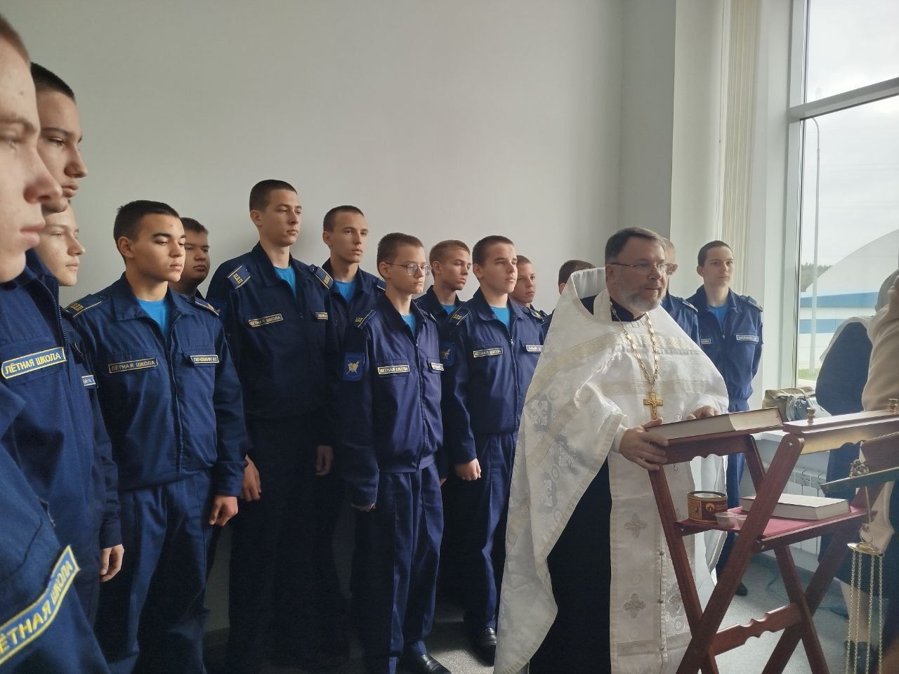 За богослужением молились директор школы полковник запаса ВВС Ярослав Анатольевич Долинчук, сотрудники и воспитанники.