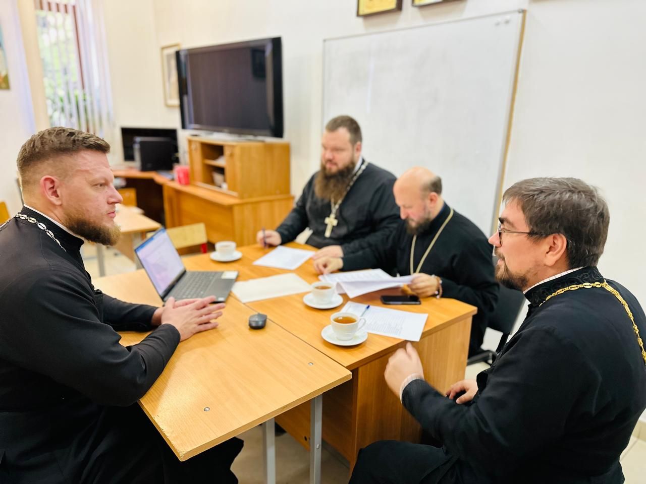 В этот же день отец Андрей и отец Александр посетили Балашихинское епархиальное управление, где приняли участие в рабочем совещании, которое возглавил секретарь епархиального управления протоиерей Алексий Михаленя.