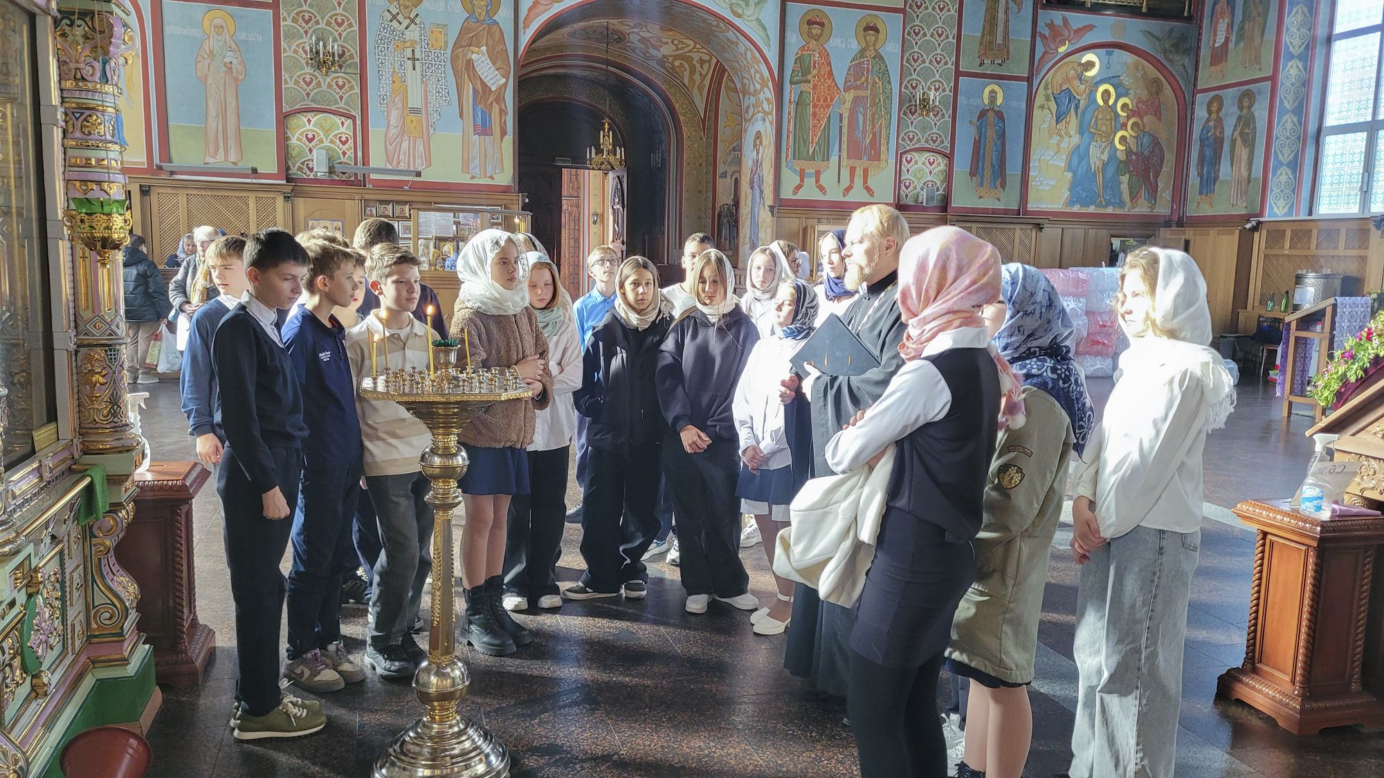 Экскурсию для гимназистов провёл клирик собора священник Димитрий Медведев.