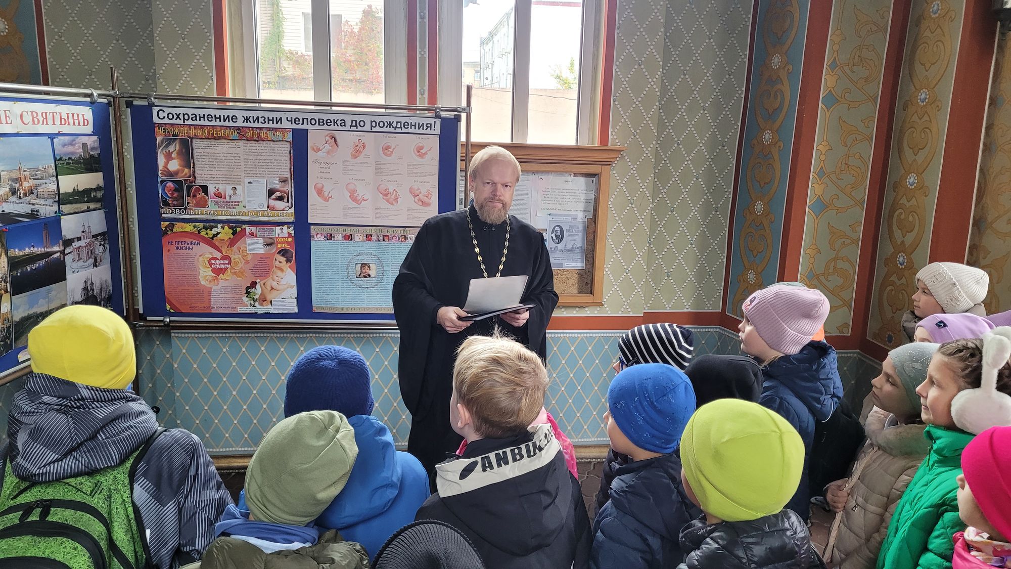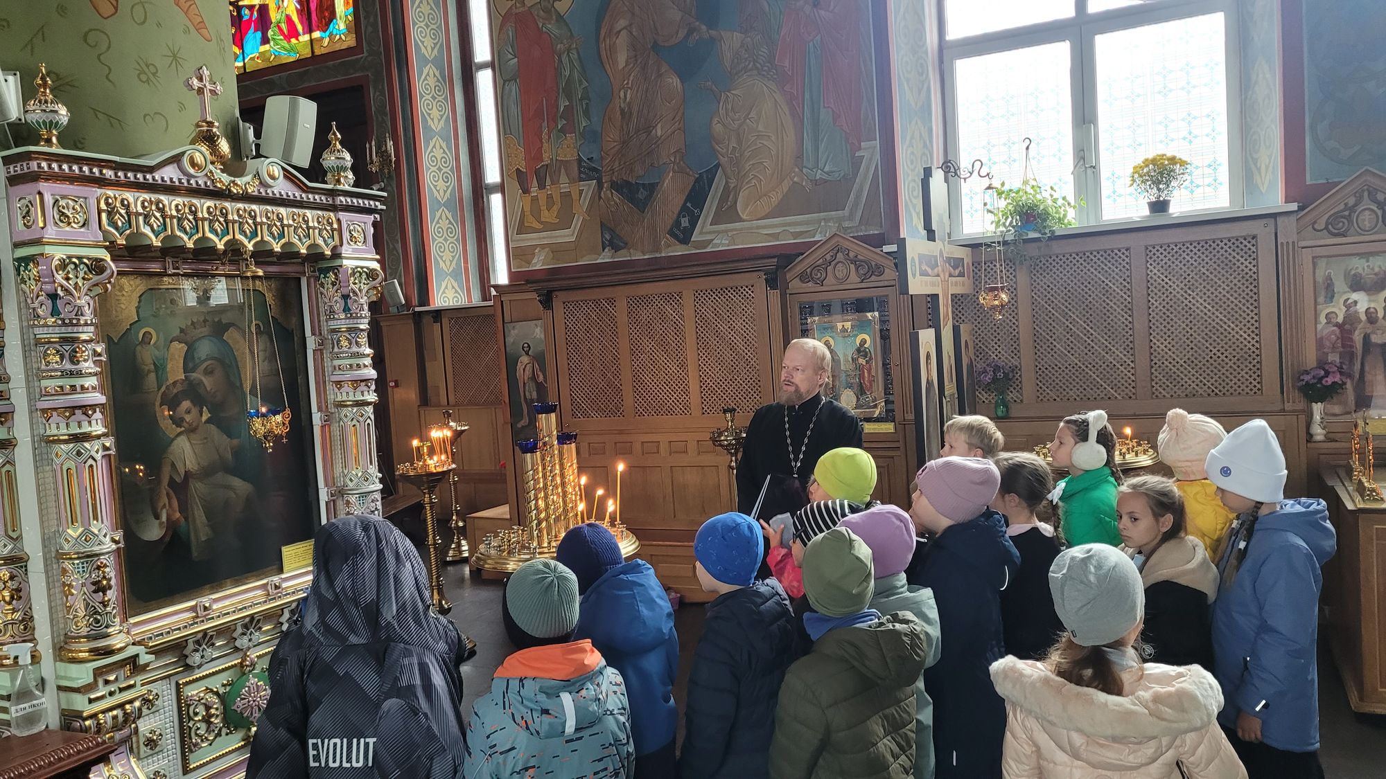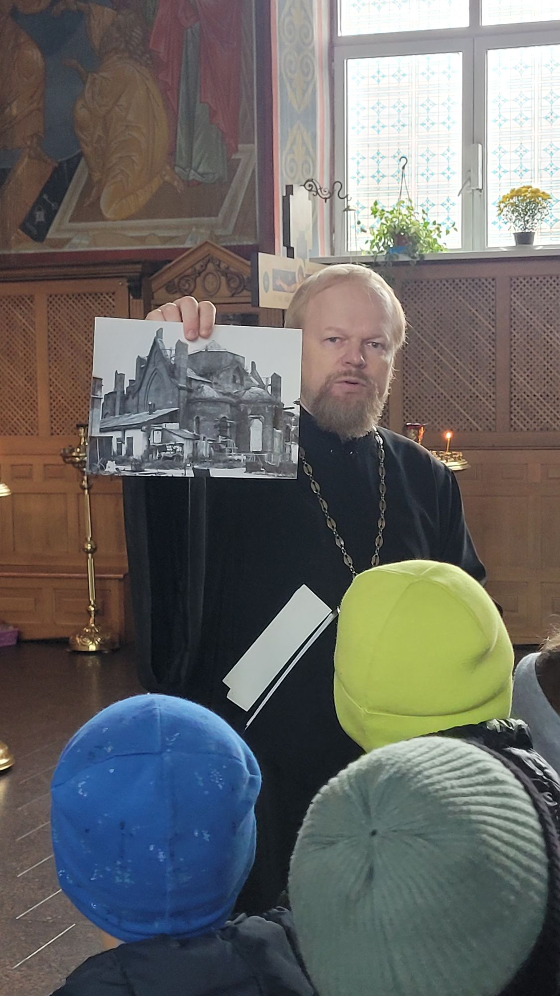 Клирик собора священник Димитрий Медведев провёл для гимназистов экскурсию, рассказал об истории храма, его архитектуре и местночтимых святынях.