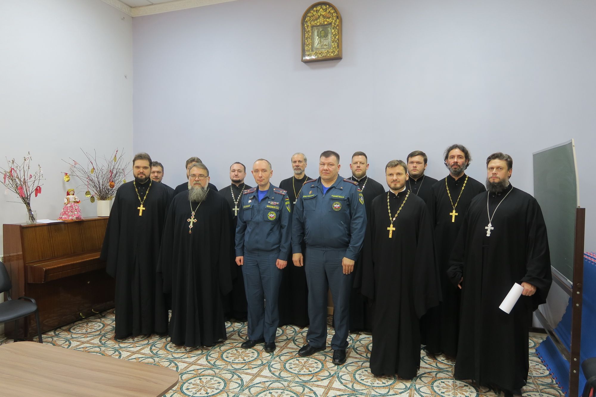 Начальник отделения надзорной деятельности по городскому округу Балашиха Управления надзорной деятельности и профилактической работы Главного управления МЧС России по Московской области полковник МЧС Сергей Владимирович Максимов и заместитель главного государственного инспектора городского округа Балашиха по пожарному надзору, подполковник МЧС Евгений Анатольевич Рудометов провели для духовенства инструктаж, напомнили о требованиях пожарной безопасности на объектах религиозного назначения и ответили на вопросы священнослужителей.